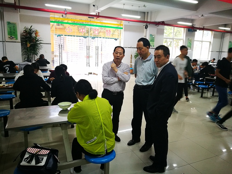 9月4日中午,院长杜建忠同志带领工会主席孟祥斌、副院长毛兴中、学生处长李喜民、后勤处长董鹏来到餐饮中心一楼,检查学生餐厅饮食服务工作。