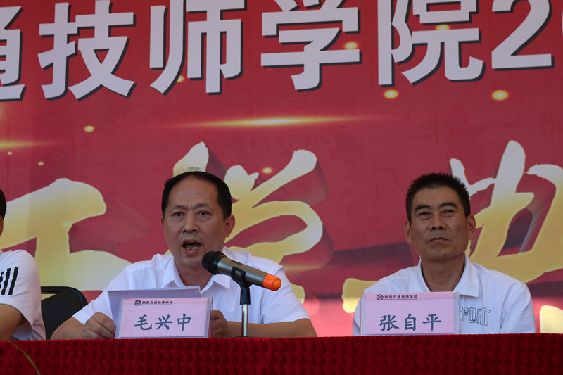 9月6日下午,陕西交通技师学院2017-2018学年第一学期学生大会暨2017级新生开学典礼在学院田径操场隆重举行。副院长张自平、毛兴中,教务处处长李剑平、汽车系主任孙文平、公路系主任王景峰、教学督导室主任张润溪、后勤处处长董鹏、团委书记王昌利、保卫处外勤干事常新及全体师生参加了本次会议。会议由学生处处长李喜民主持。