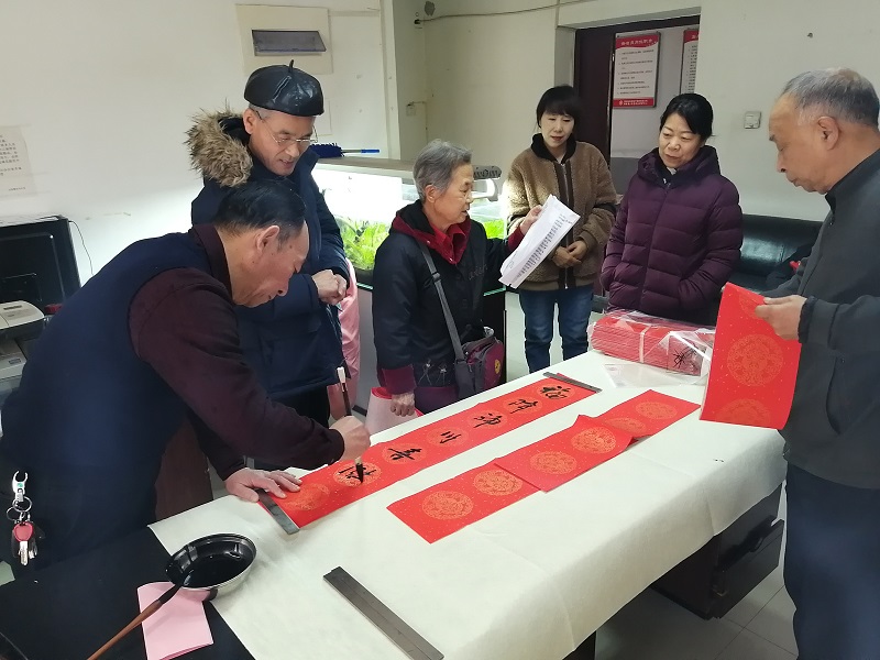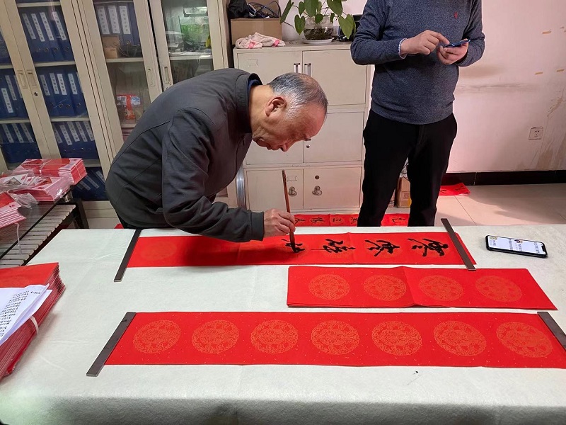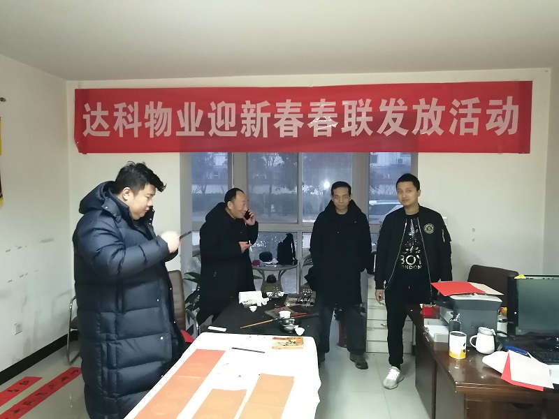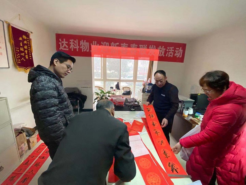 暖暖新年,殷殷祝福。为弘扬中国优秀传统文化,营造欢乐祥和的新年氛围,丰富我院西安住宅小区广大业主的精神生活。1月18日下午,由院工会组织邀请学院纪委书记张世西、西安市书协王相辰老师在明珠苑小区物业办为业主义写春联,学院工会主席孟祥斌、院长助理董鹏、物业公司负责人参加此项活动。