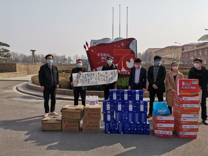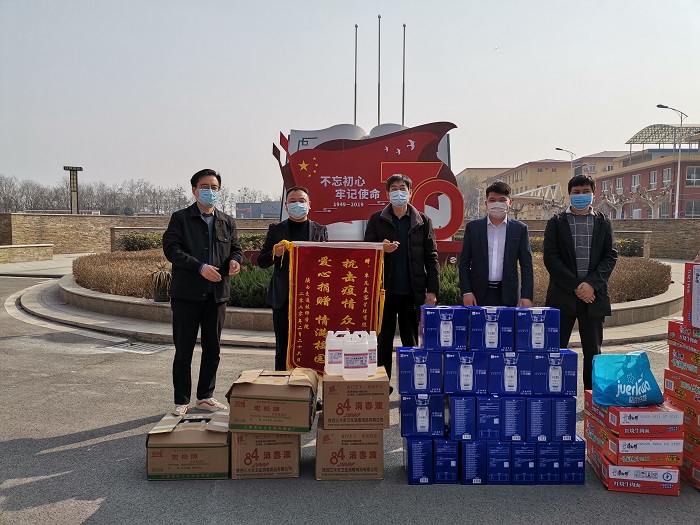 众志成城战疫情,爱心企业在行动。2月25日下午,西安卓凡美容管理有限公司董事长、陕西阳光协会副会长师林涛带领公司员工向我院捐赠疫情防控物资酒精20桶、84消毒液3箱、口罩200只、牛奶20箱、方便面20箱。学院副院长张自平、院长助理董鹏参加捐赠活动。