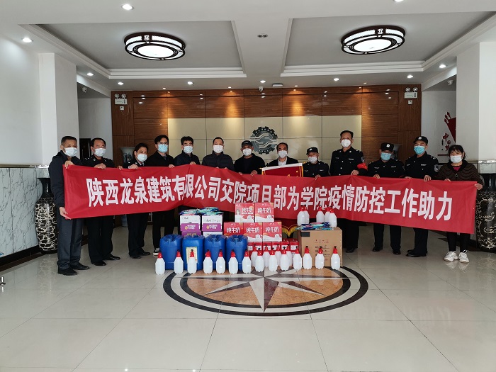 当前,新冠肺炎疫情防控正处于决战决胜的关键期,防控物资紧张。2月26下午,陕西龙泉建筑工程有限公司交院项目部王利等一行雪中送炭,为我院捐赠疫情防控物资。院长杜建忠、副院长张自平、院长助理董鹏参加捐赠活动。