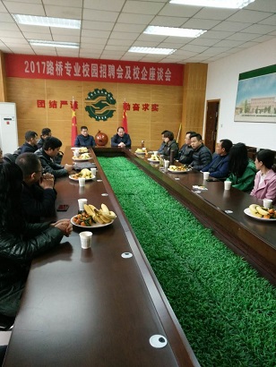 首先,参会各代表与学院相关领导、公路系主管、招就办负责人进行了简单的座谈会。公路系王景峰主任介绍了参会企业以及此次参加招聘会的学生的整体情况。毛兴中副院长表达了对参加此次招聘会的各企业代表,表示热烈欢迎。