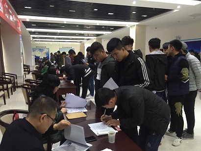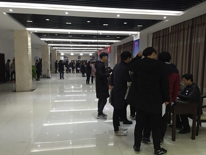 座谈会结束后,招聘会正式拉起帷幕。在我院培训楼一楼大厅,同学们有序入场,积极参加面试。