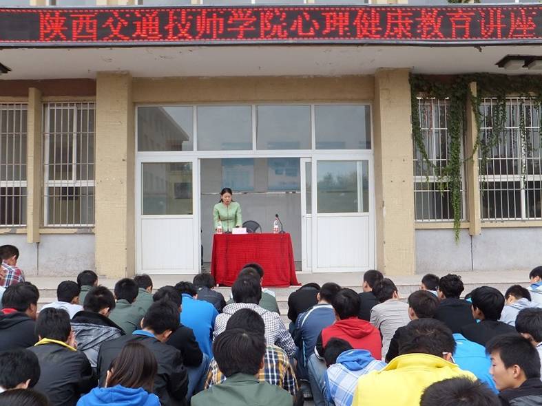 9月25日,下午学生处、团委组织学院全体同学各班主任及教官在实验楼前,举办了一场别开生面的心理健康专题讲座,特邀请了陕西师范大学心理学硕士、陕西交通职业技术学院心理咨询中心主任、国家二级心理咨询师吴新颖老师。