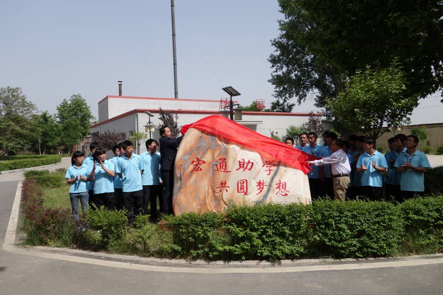 最后,院长杜建忠和宏通公司董事长刘战利等人进行了“宏通助学 共圆梦想”的揭牌仪式并和受资助学生进行了合影留念。
