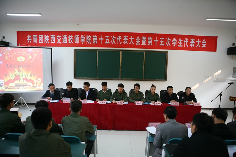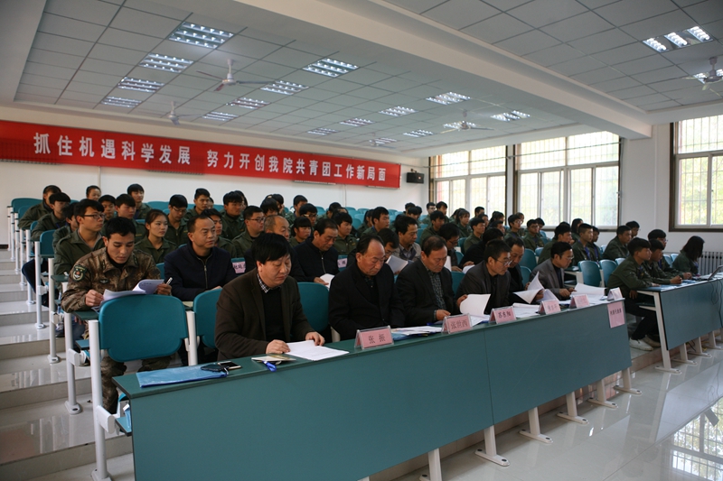 11月3日下午,我院第十五届团代会暨团代会在东阶梯教室隆重举行。会议由第十五届团代会暨学代会主席团团长李喜民主持,学院党政领导班子、各系部负责人及各位班主任教官和近100名学生代表参加了开幕式。