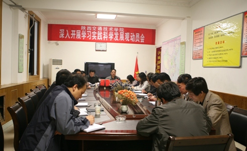 图为:10月13日晚,陕西交通技术学院全体中层以上干部参加深入学习实践科学发展观动员会