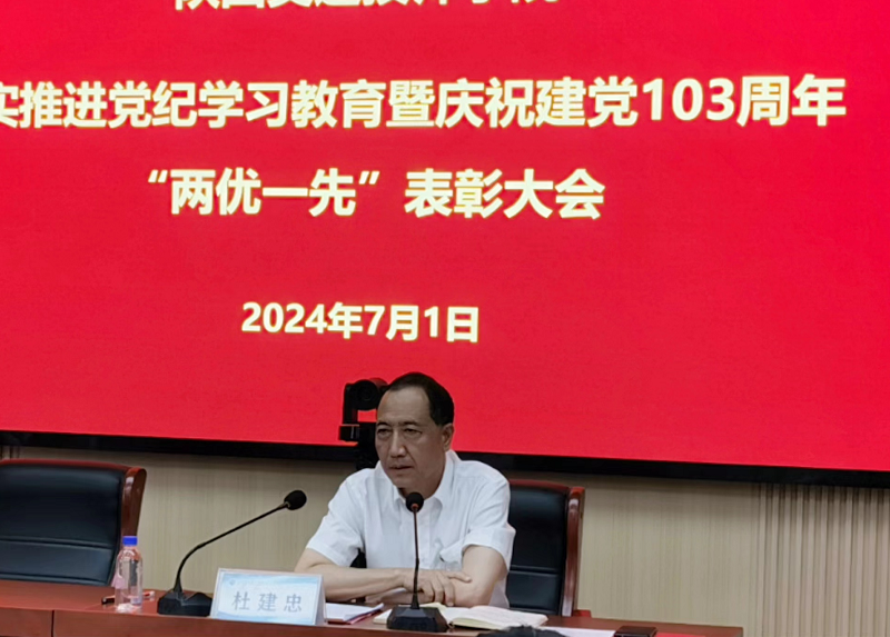 为深入学习贯彻习近平新时代中国特色社会主义思想,扎实推进党纪学习教育,激励广大党员在新时代中职教育中展现新担当、新作为,为实现新时代党赋予的历史使命而努力奋斗。7月1日下午,我院隆重召开扎实推进党纪学习教育暨庆祝建党103周年“两优一先”表彰大会,院党委书记、院长杜建忠发表讲话。会议由院党委副书记、纪委书记孟祥斌主持。