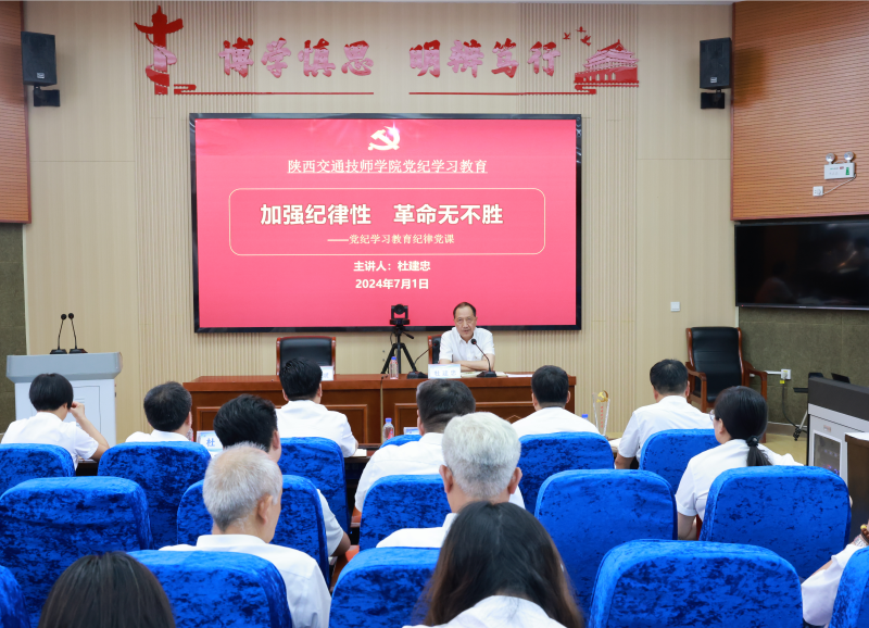 为深入学习贯彻习近平总书记关于党纪学习教育的重要讲话和重要指示精神,深入领会新修订的《中国共产党纪律处分条例》,推动党纪学习教育取得实实在在成效,引导党员干部进一步强化纪律意识、加强自我约束、提高免疫能力,增强政治定力、纪律定力、道德定力、抵腐定力,明纪法、守底线,始终做到忠诚干净担当。7月1日,陕西交通技师学院党委书记、院长杜建忠为全体党员讲授了一堂生动而深刻的纪律党课。