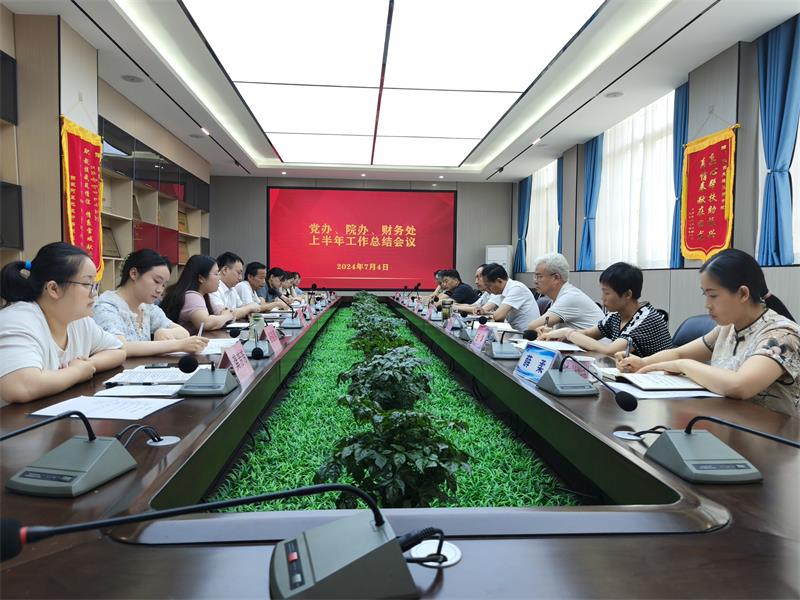 7月4日下午,党办、院办、财务处联合召开上半年工作总结会议。党委书记、院长杜建忠,党委副书记、纪委书记孟祥斌,党委委员、院长助理、教务处处长李剑平出席本次会议,党办、院办、财务处全体人员参加会议,会议由院办副主任高阳主持。