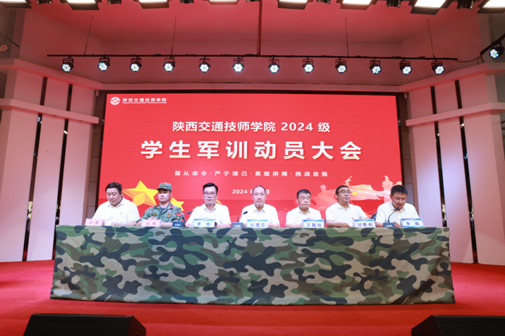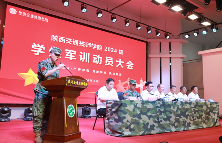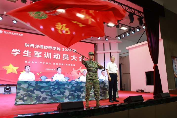 杜建忠书记为军训团授团旗;教官总负责人为各连队授连旗。承训部队教官代表发言,表示全体教官将传承张思德精神,端正思想,提高认识,立德树人,铸魂育人,科学组训,文明施训,不断改进和提升训练效果。一连学生刘嘉馨代表全体参训学生发出倡议,号召全体学生严格遵守军训纪律,服从命令、听从指挥,以教官为榜样,用军人标准严格要求自己,学好军事技能,增强国防意识,认真完成训练,展现陕西交通技师学院学生的良好精神风貌。