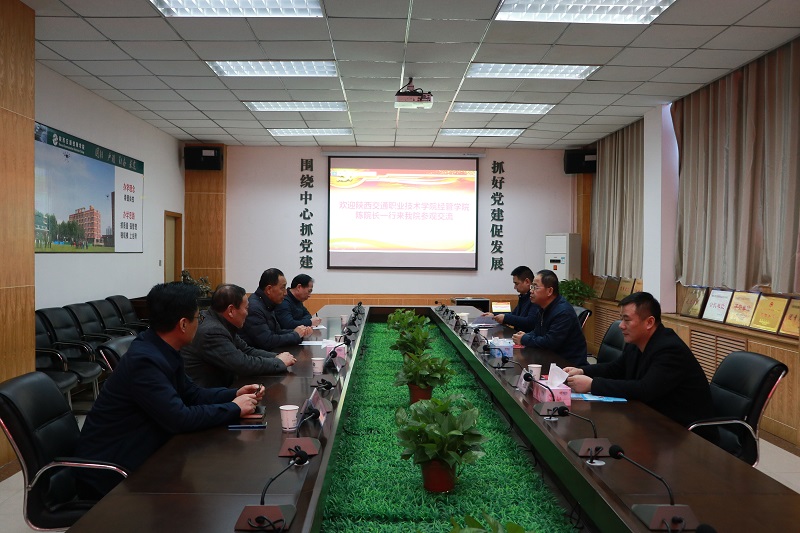 2019年12月10日上午,陕西交通职业技术学院经管学院陈军川院长、杨海强副书记、刘海斌副院长一行三人来我院参观交流,并在综合楼一楼会议室召开了工作交流座谈会。学院院长杜建忠、副院长苏东阳、副院长毛兴中、院长助理董鹏热情接待。