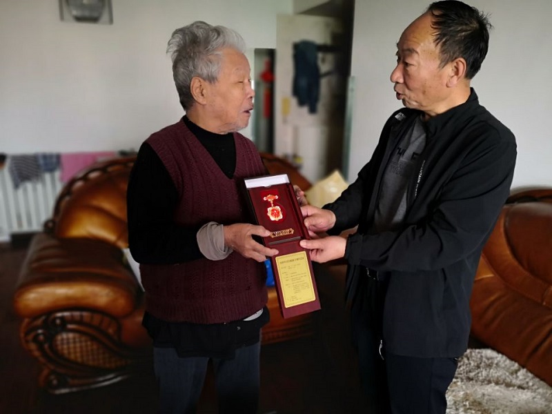 当张世西同志把纪念章递给他时,老人非常高兴,把纪念章捧在手上,翻过来覆过去、反复端详,激动的心情溢于言表:感谢党和国家给予这么高的荣誉,一定要忠于党,全心全意为人民服务,摆正自己的位置,不忘初心,希望继续为国家和人民做贡献,党叫干啥就干啥。并向探望他们的几位同志分享了自己的生活体会,老人革命的乐观主义和积极向上的生活态度极大鼓舞和感染着每一个人,大家很受鼓舞教育。