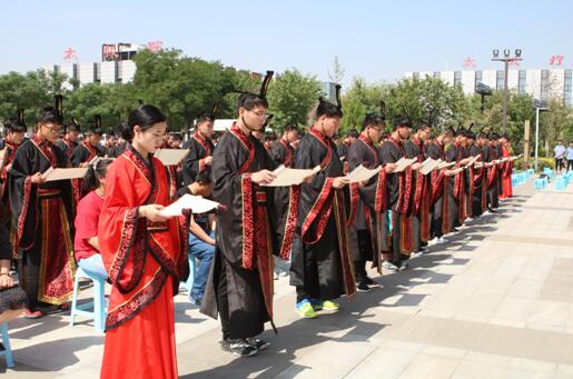 活动现场举行成人礼冠礼仪式,学生向先贤孔子像行叩拜礼,并拜谢家长和师长,家长为同学们戴上成人礼冠,学生们诵读成人礼誓词。学生家长和学生代表先后发表感言,共同呼吁同学们珍惜美好年华,莫负青春时光。