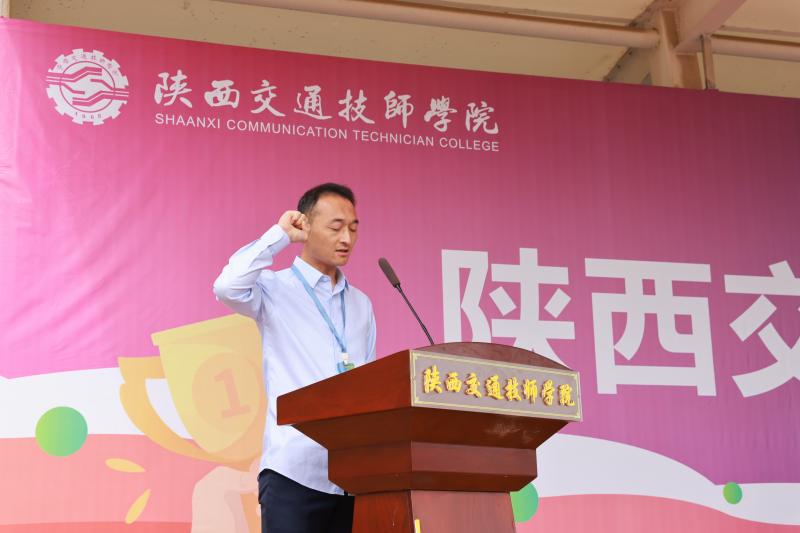 在全场热烈的掌声中,学院党委书记张鹏宣布:“陕西交通技师学院第三十六届田径运动会——开幕!”