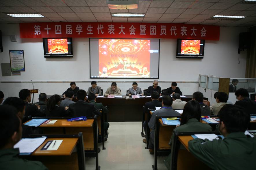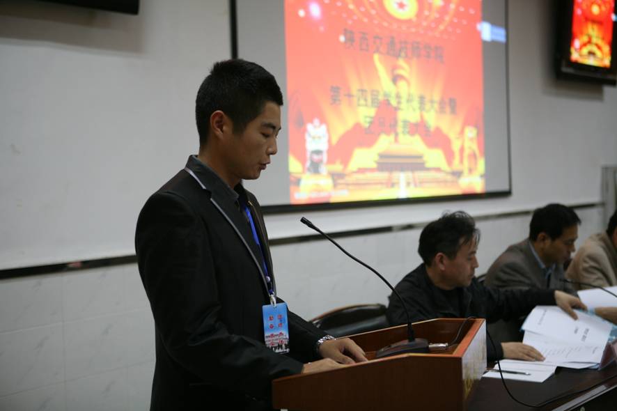 大会在激昂嘹亮的国歌声中开幕。学院党办主任侯玉印同志宣读了厅团委致陕西交通技师学院学代会暨团代会的贺信,衷心希望陕西交通技师学院的共青团、学生会组织和即将当选的学生会(团总支)新班子要以此次大会为契机,在学院党组织的正确领导下,团结和带领全院团员学生,树立高远之志,务实成才之基,力行高尚之德,勤奋学习、积极进取,为陕西交通技师学院再创新辉煌作出新的更大的贡献。工会主席孟祥斌代表学院致辞他希望广大团员青年及新一届学生会干部要团结和带领全院同学,立足学院实际,用切实行动创造崭新业绩,在学院发展的新征程中谱写光辉的篇章。