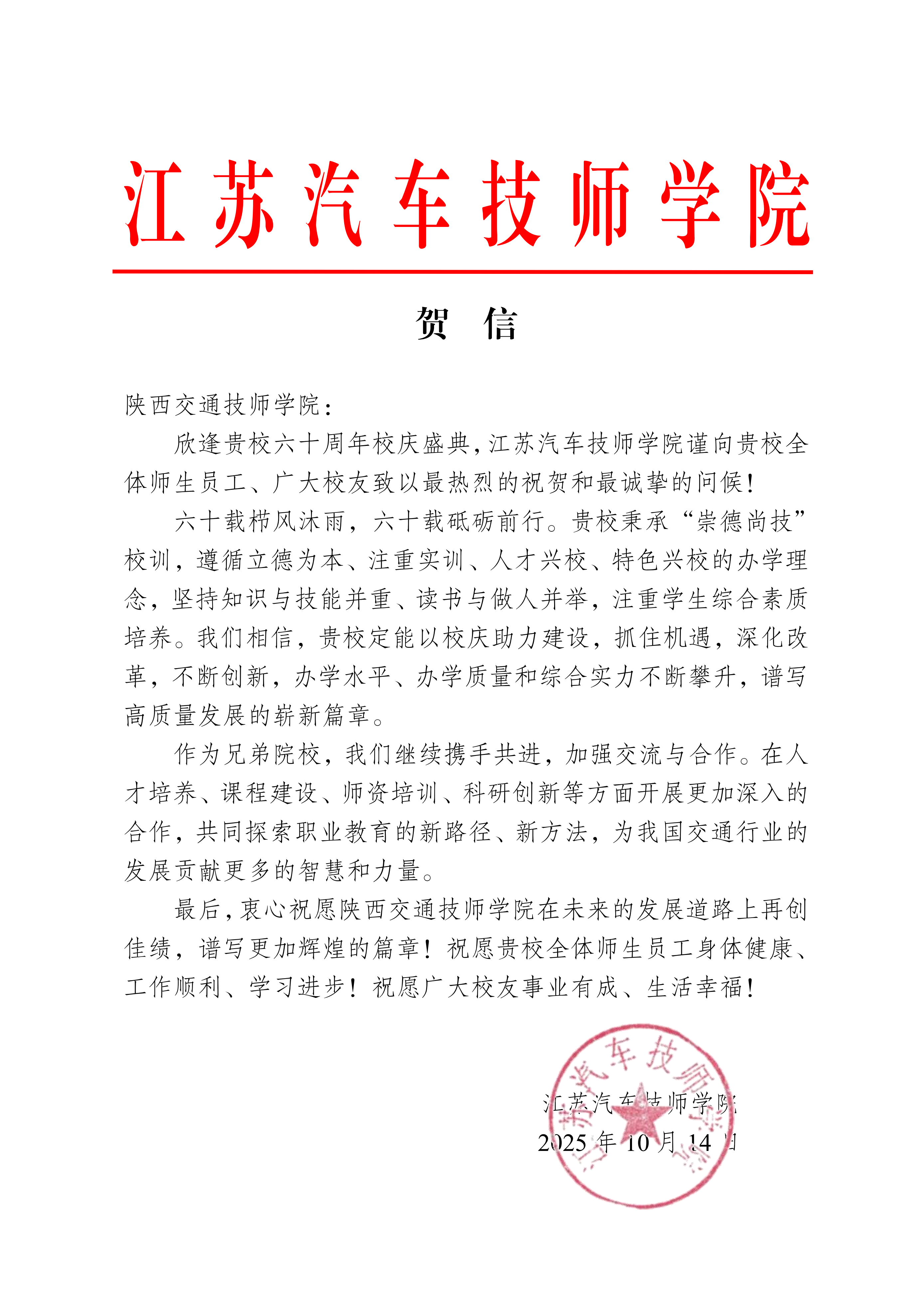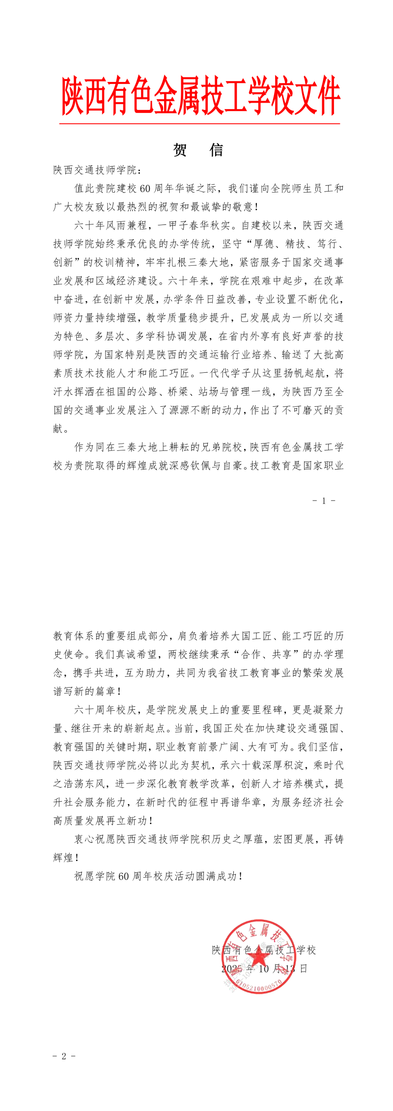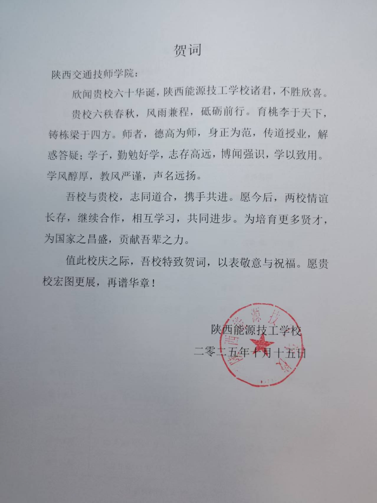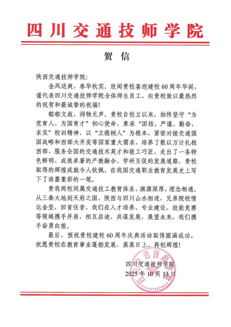 贺信纷至!陕西交通技师学院建校60周年贺信集锦(五)