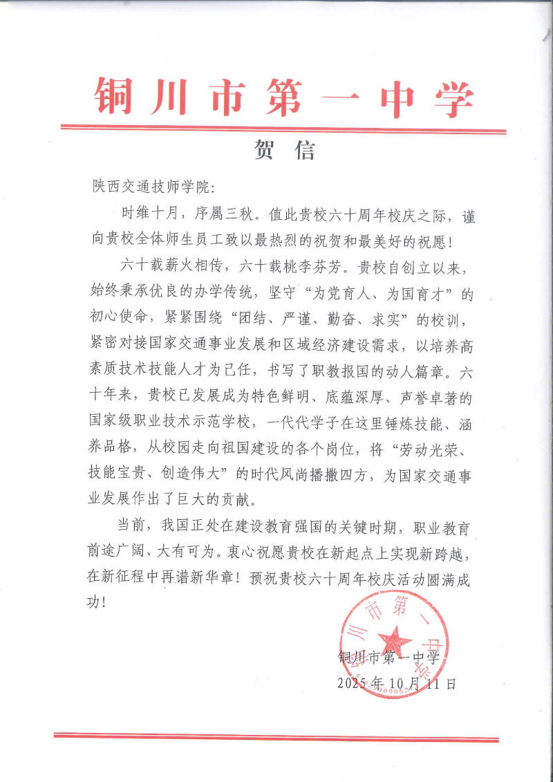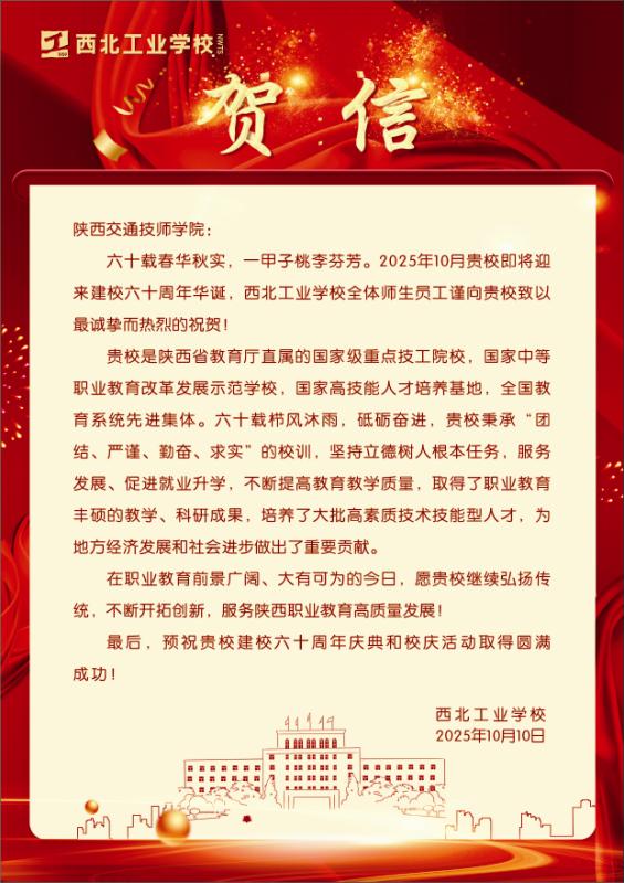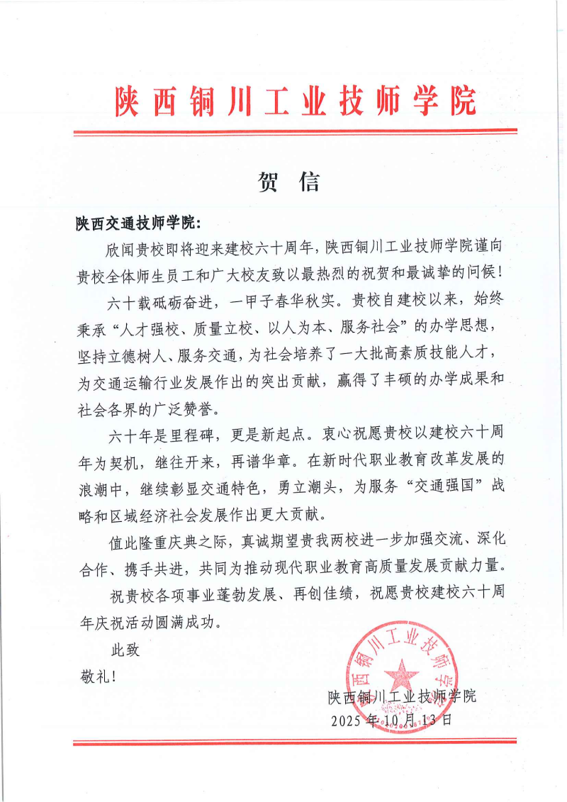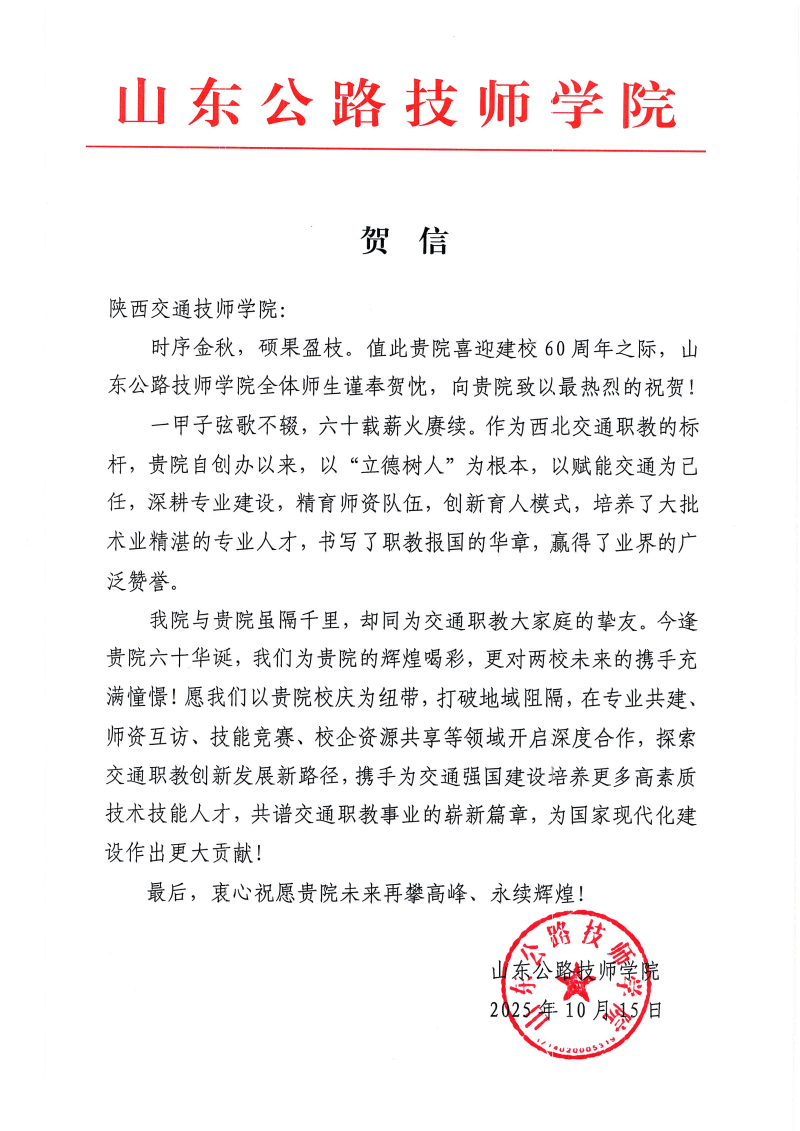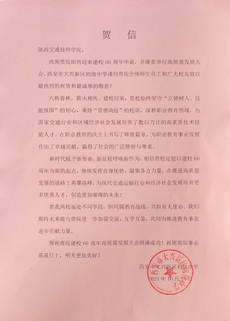 贺信纷至!陕西交通技师学院建校60周年贺信集锦(五)