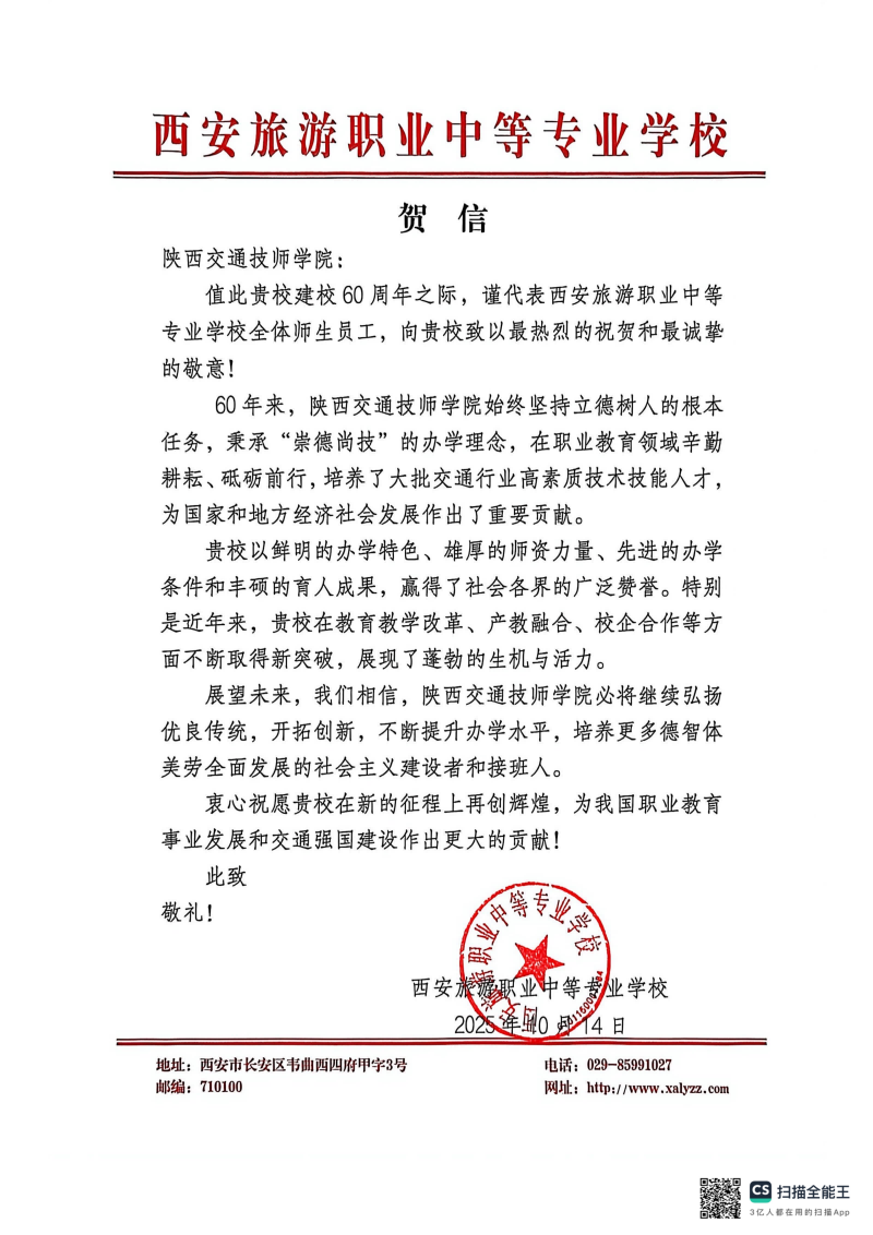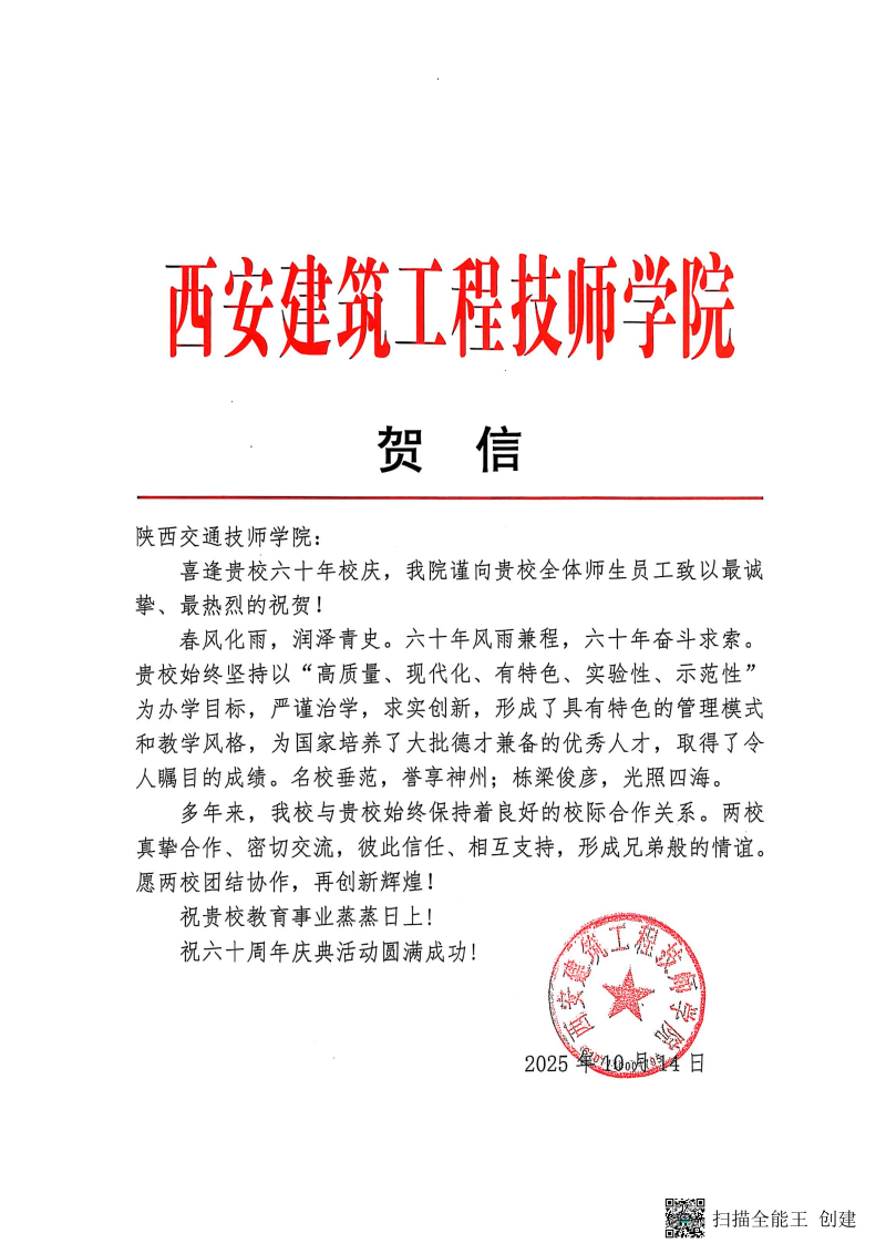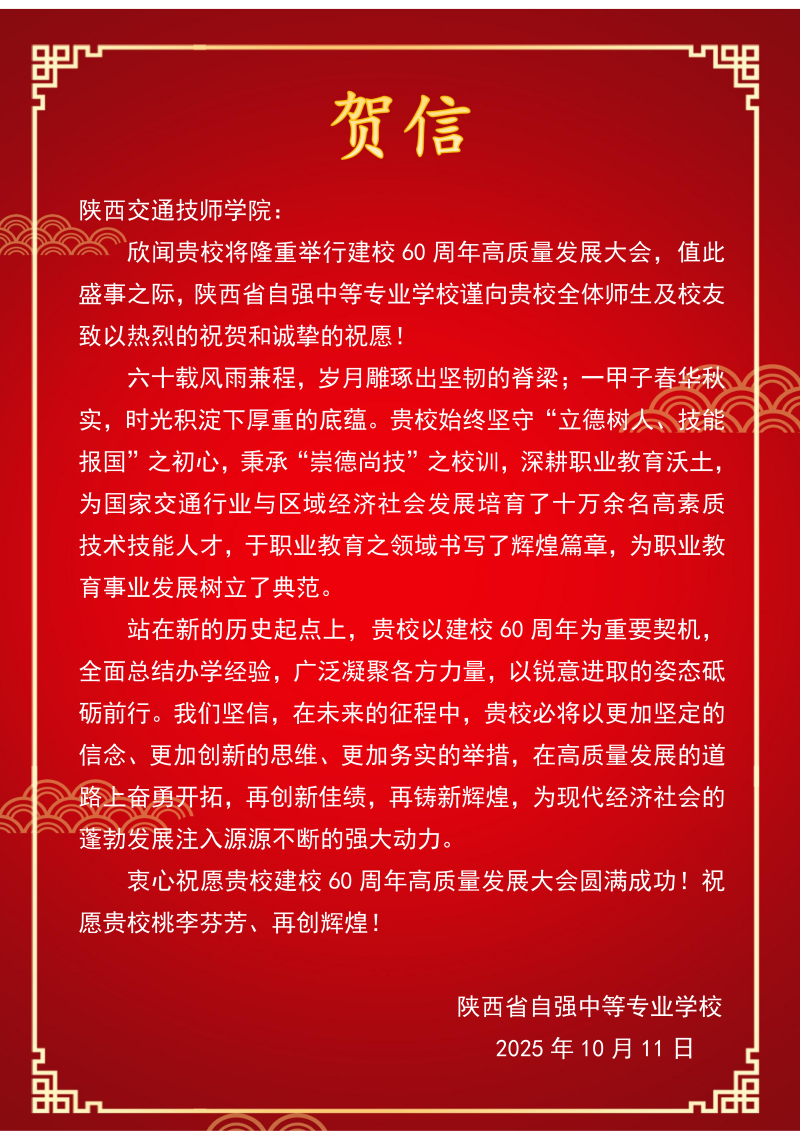 贺信纷至!陕西交通技师学院建校60周年贺信集锦(六)