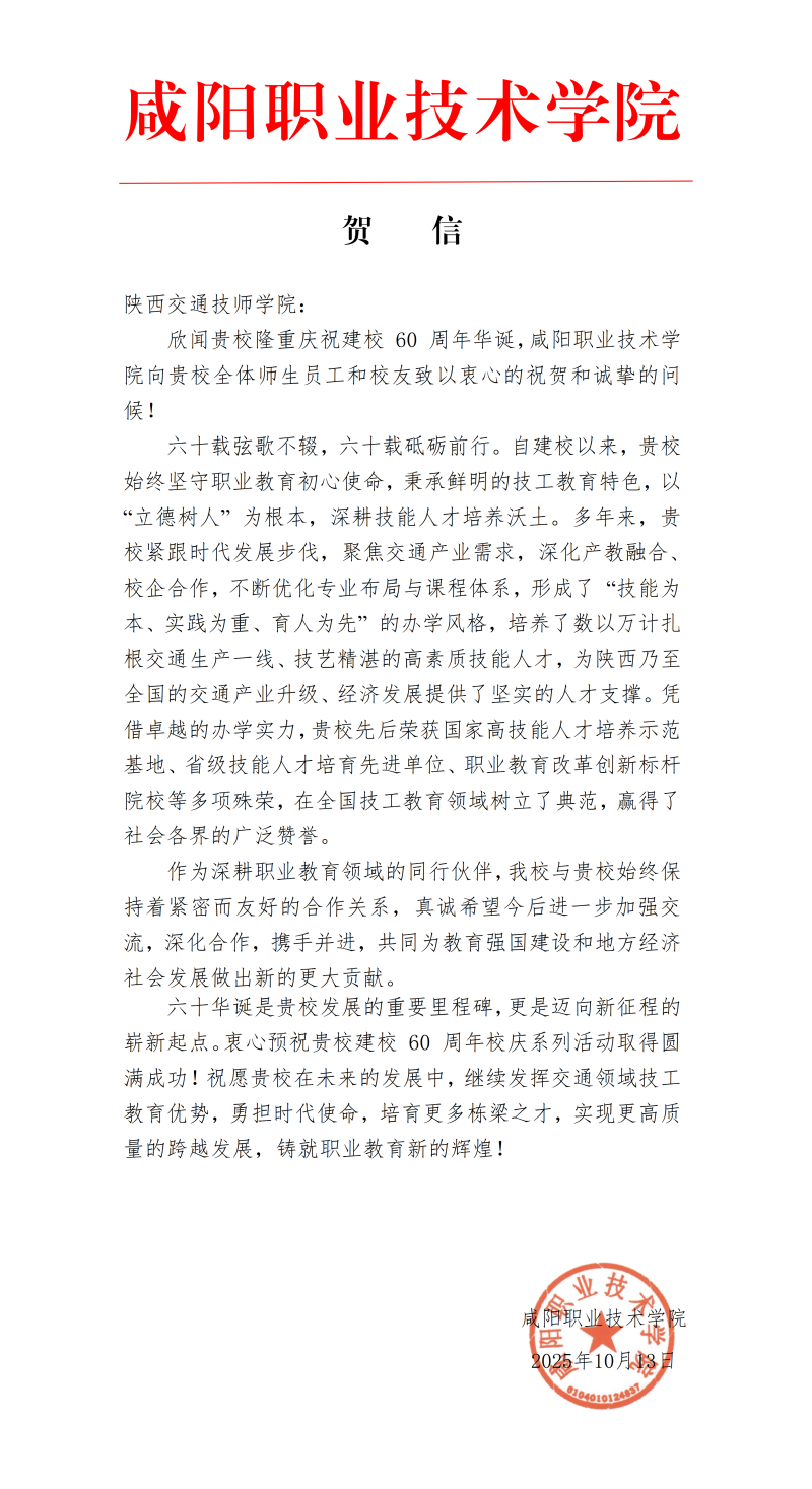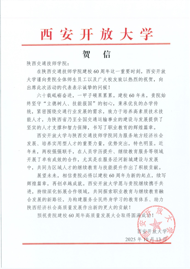 下一页:贺信纷至!陕西交通技师学院建校60周年贺信集锦(五)