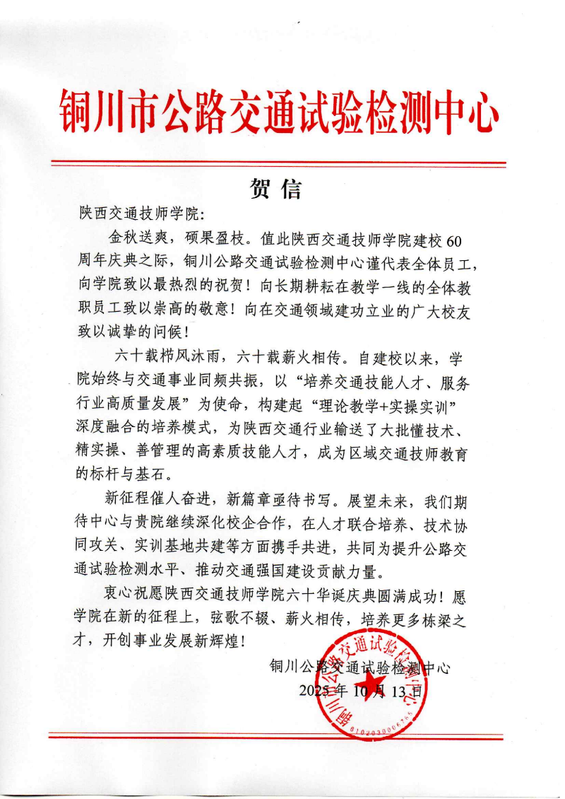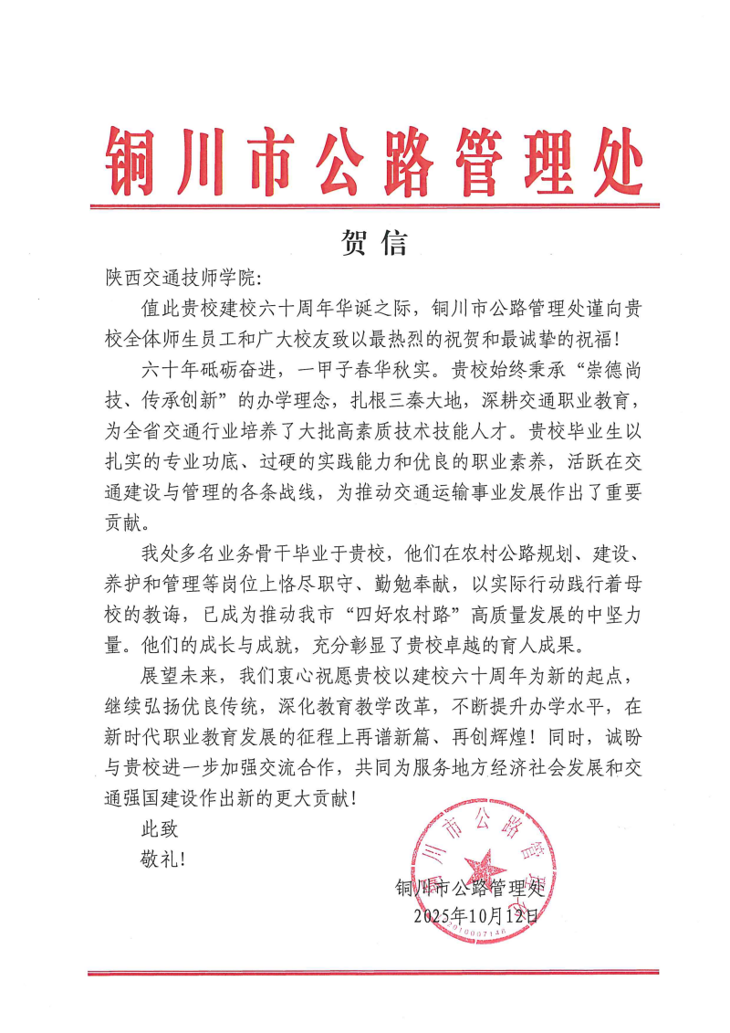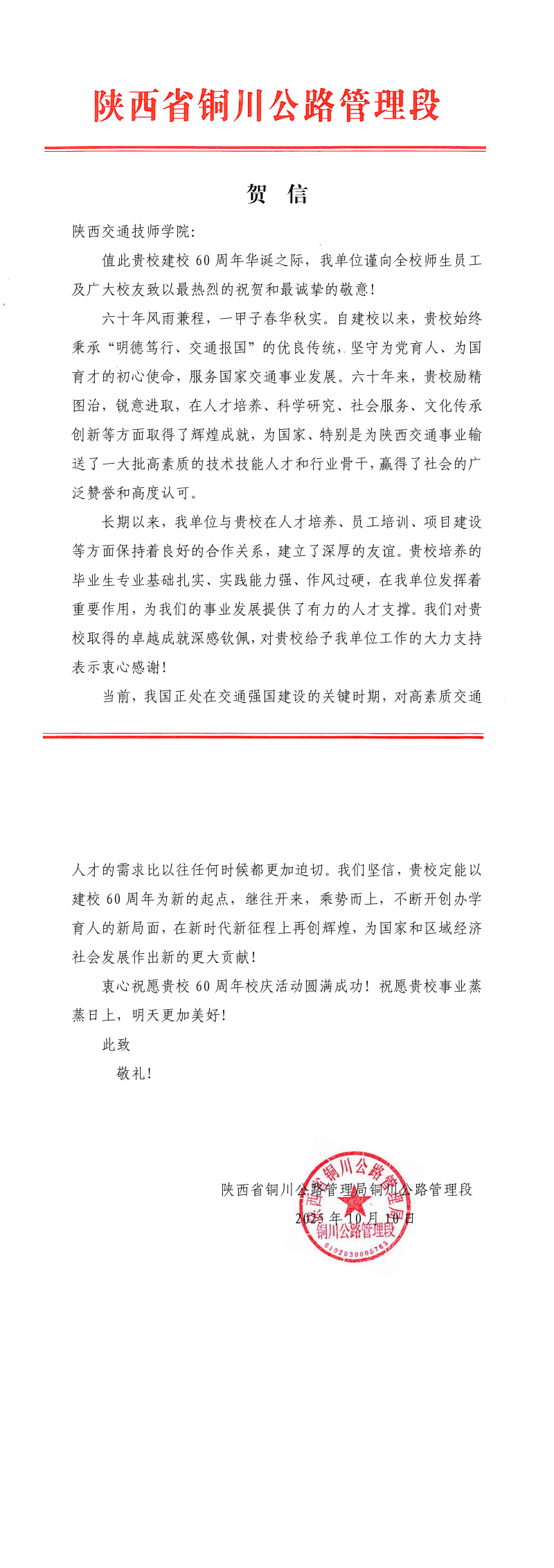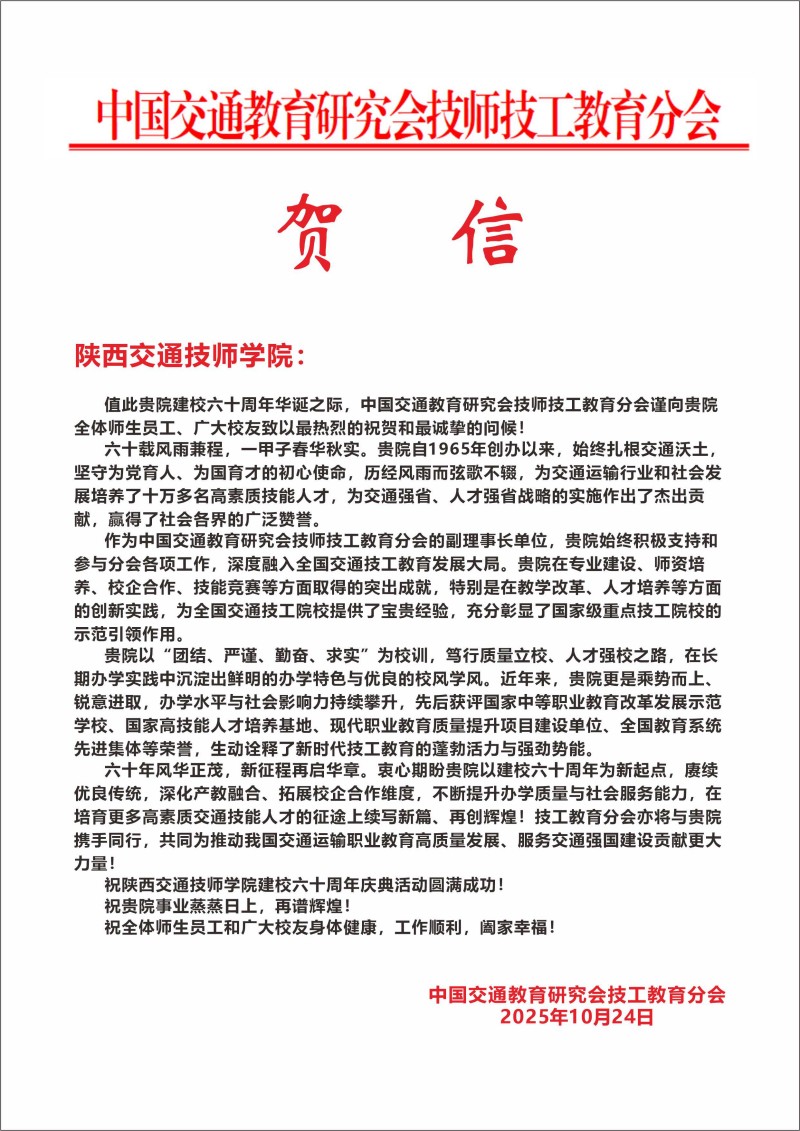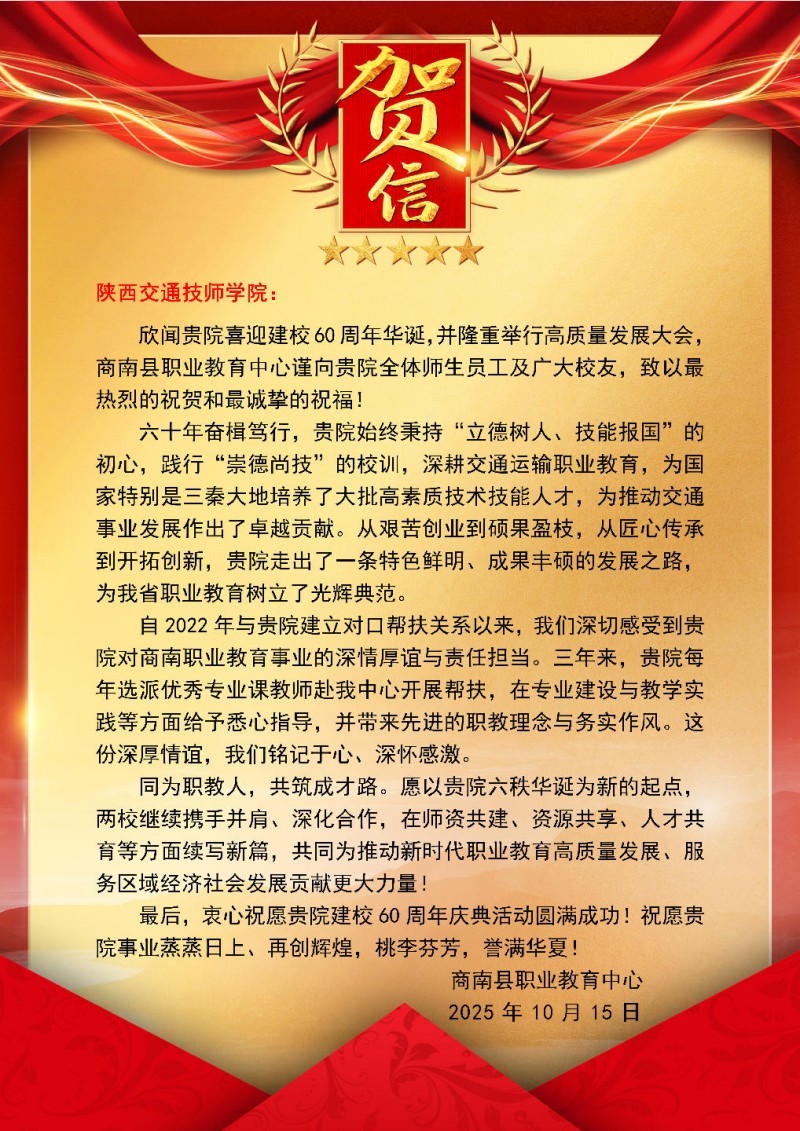 贺信纷至!陕西交通技师学院建校60周年贺信集锦(七)