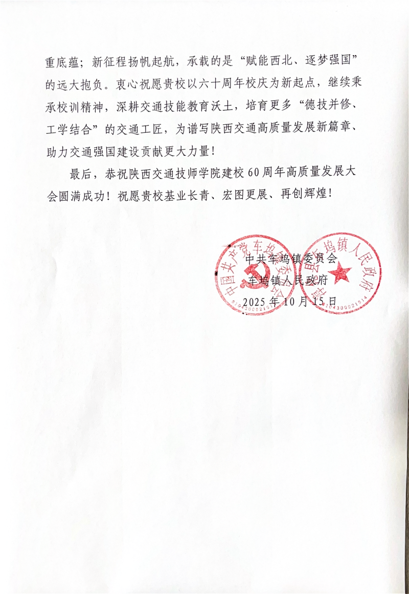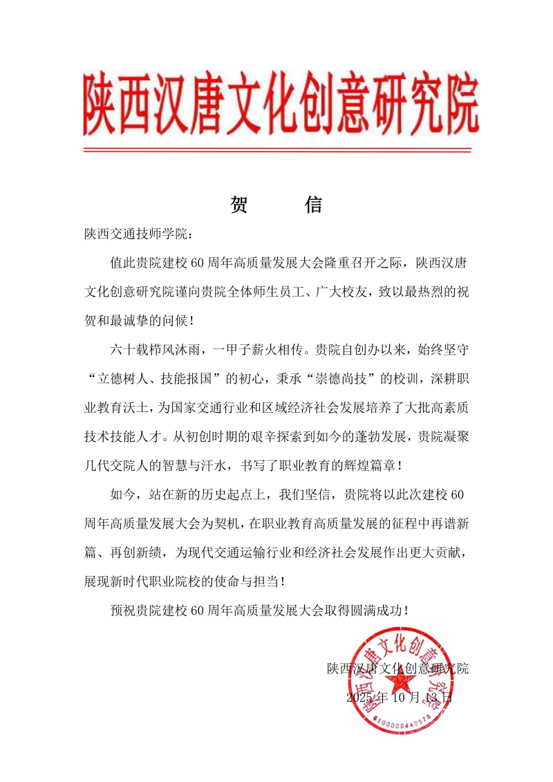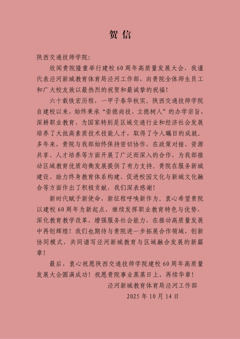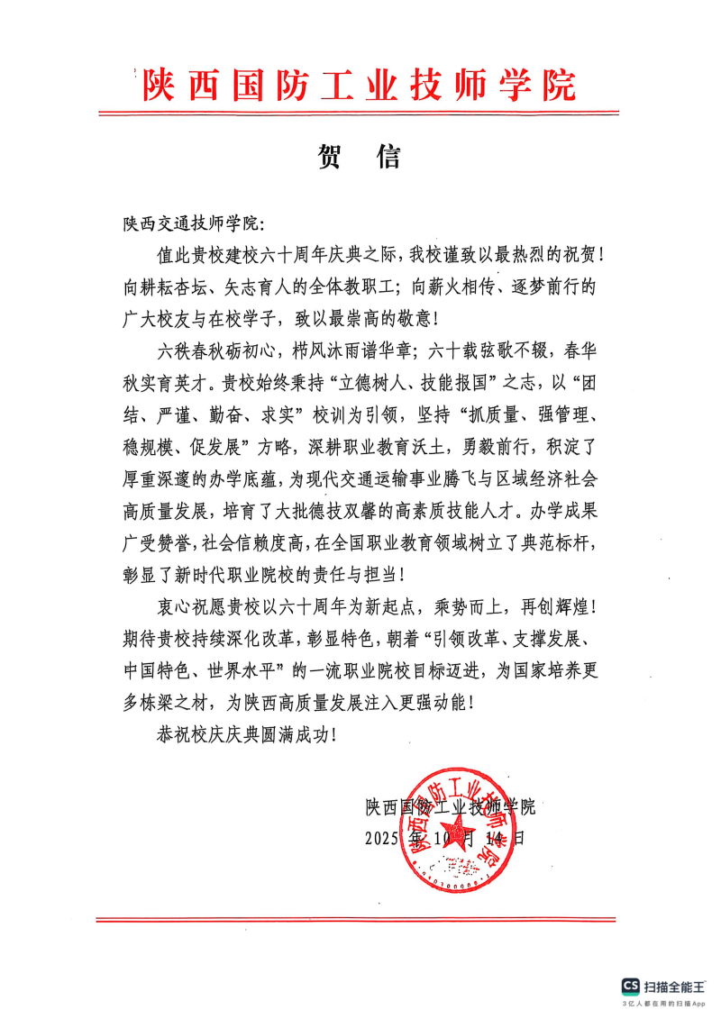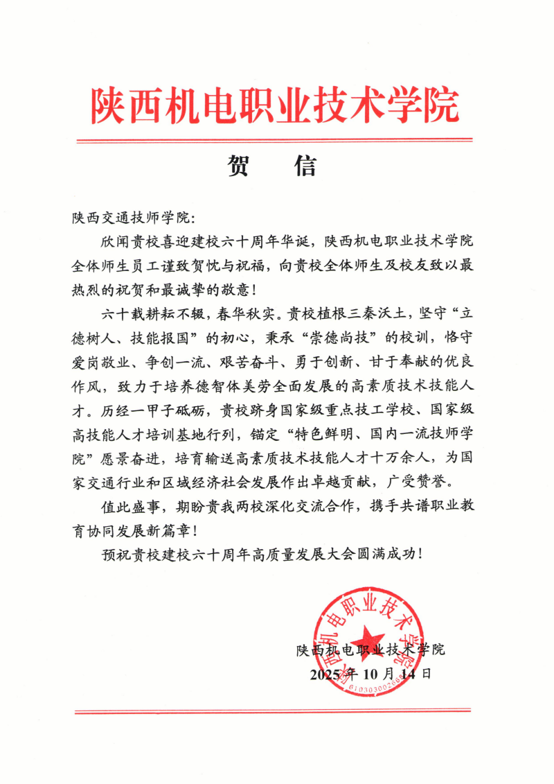 贺信纷至!陕西交通技师学院建校60周年贺信集锦(八)