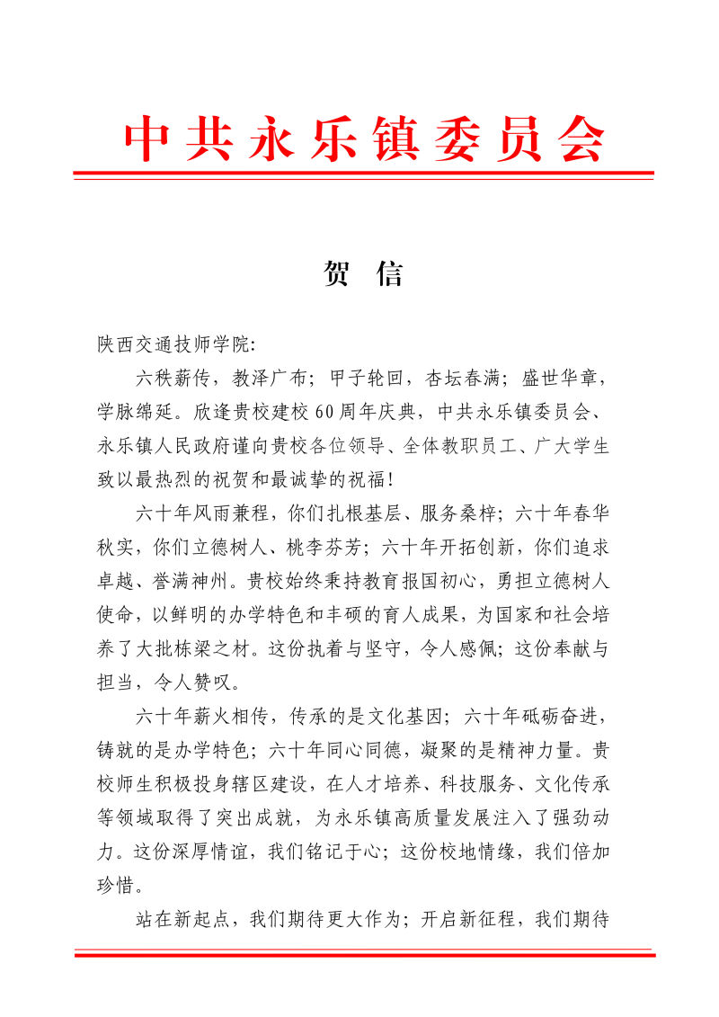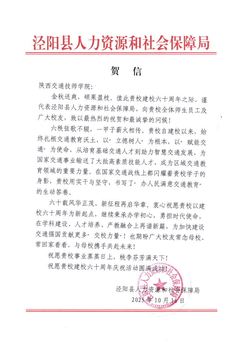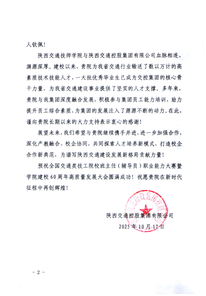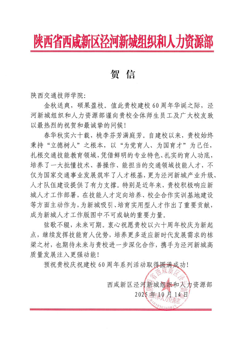 贺信纷至!陕西交通技师学院建校60周年贺信集锦(八)