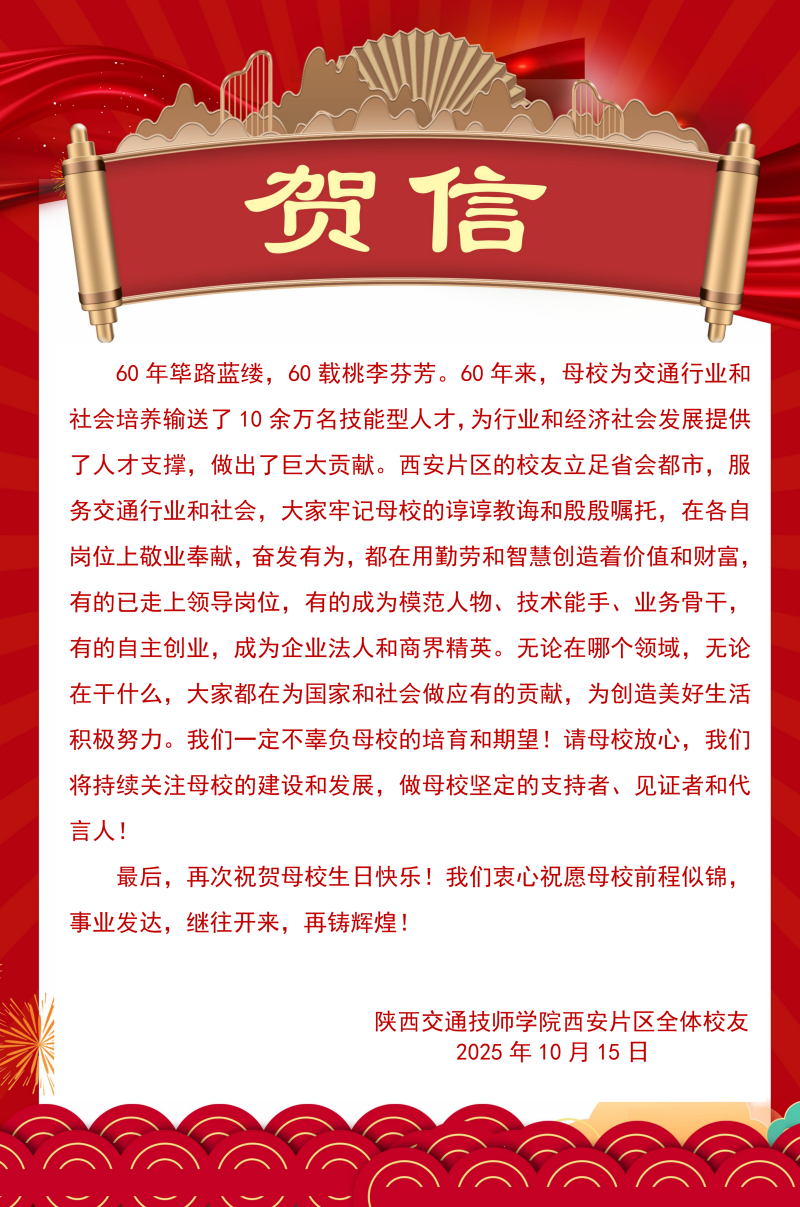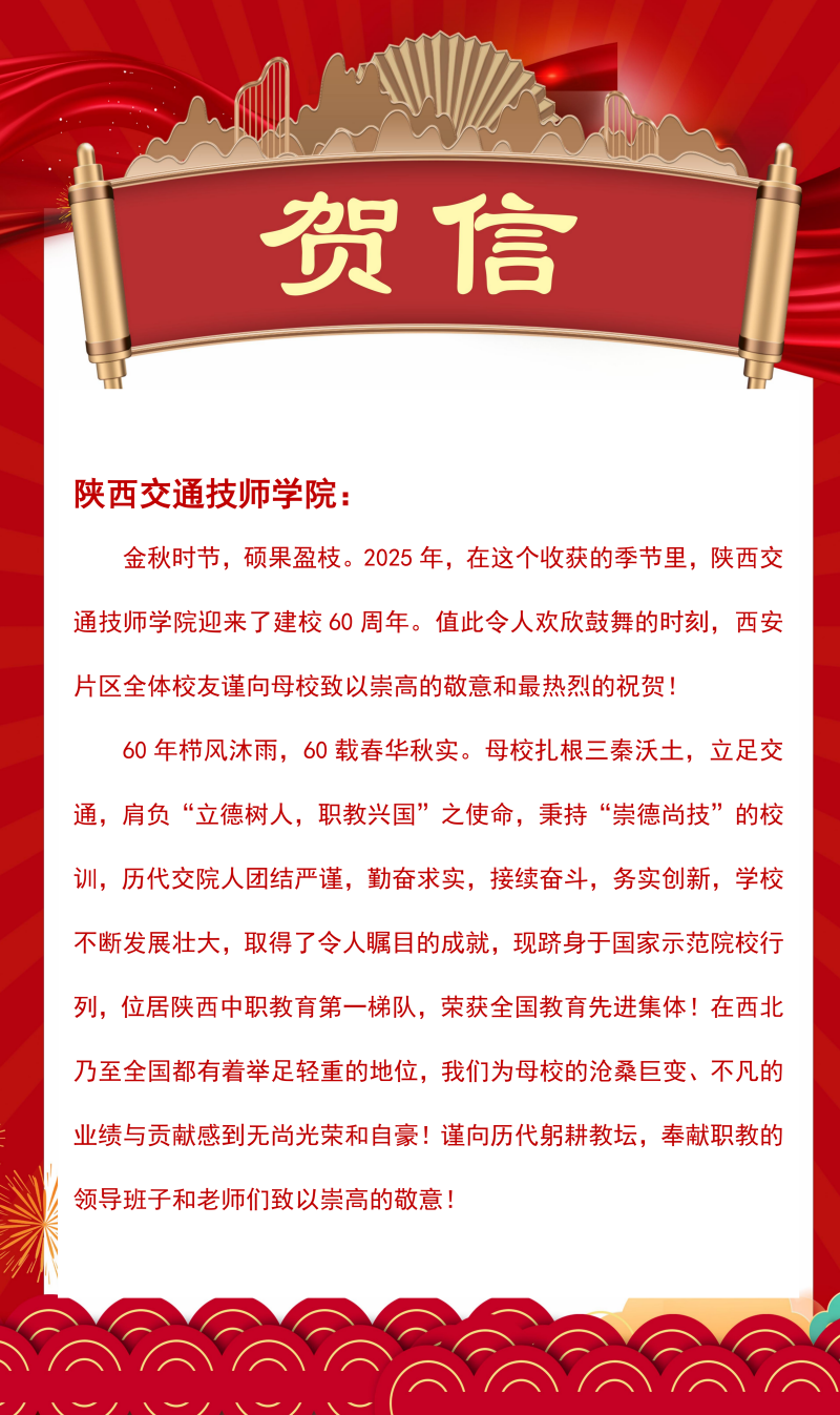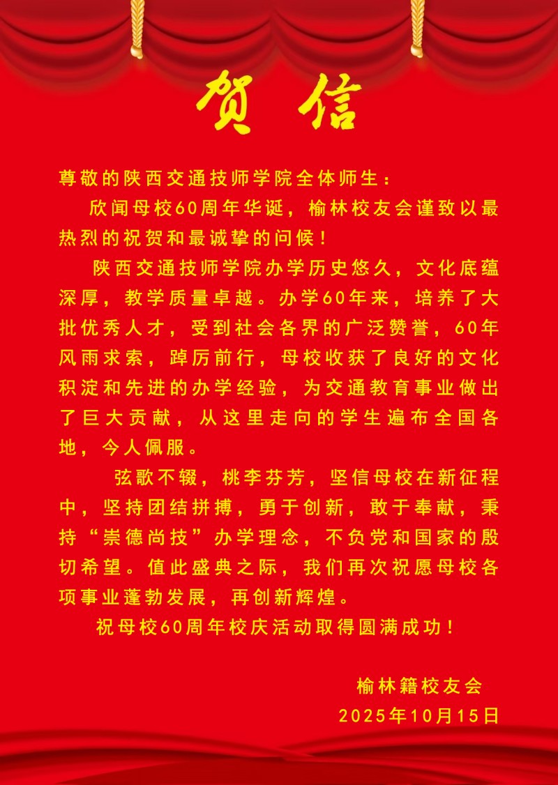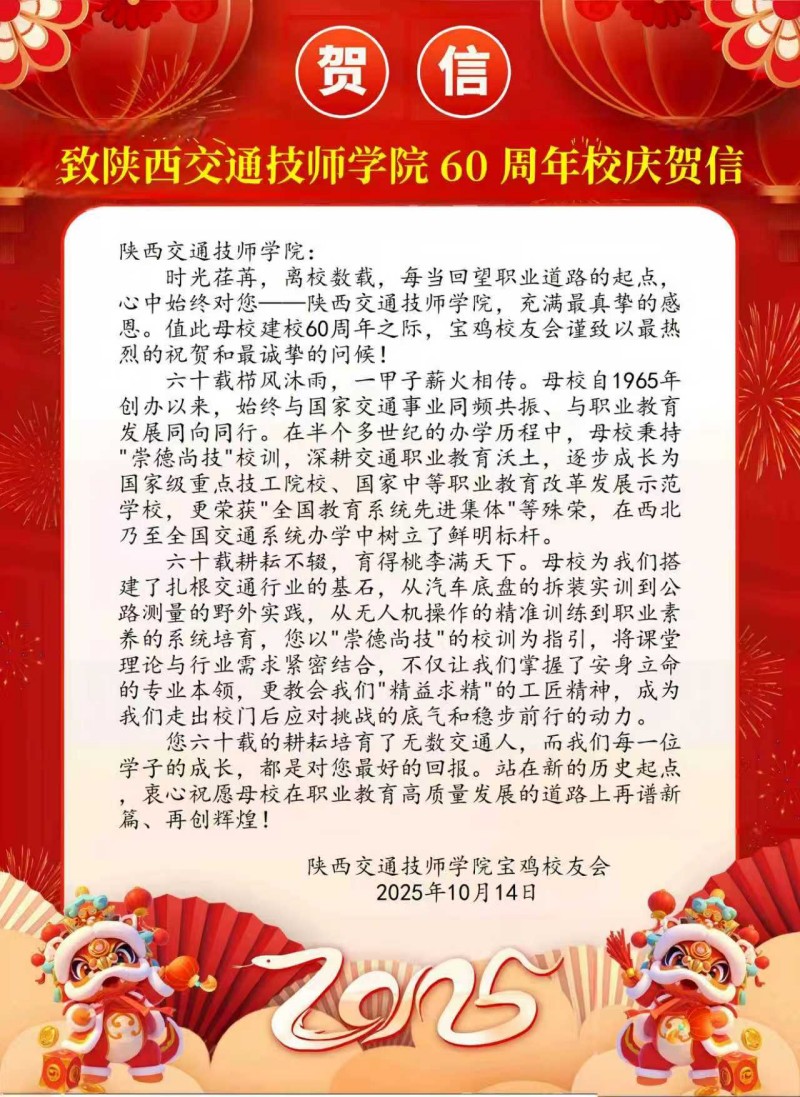 贺信纷至!陕西交通技师学院建校60周年贺信集锦(十)
