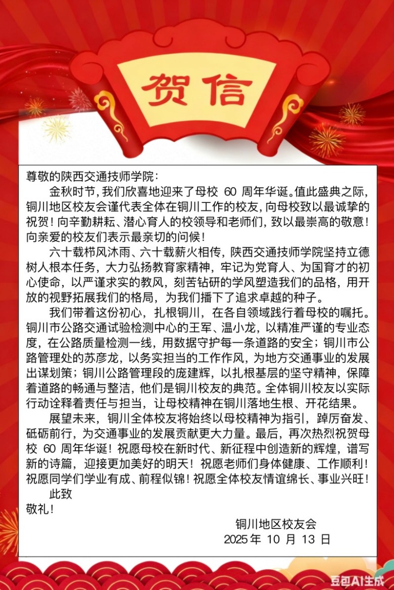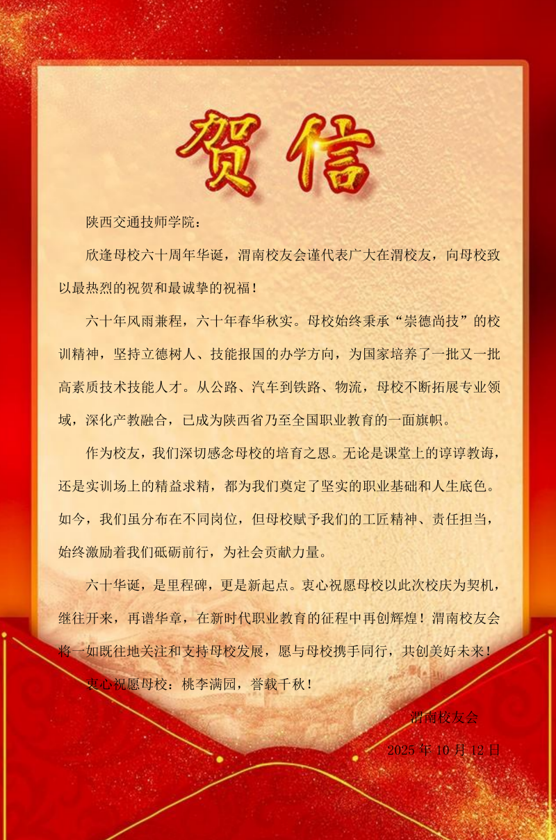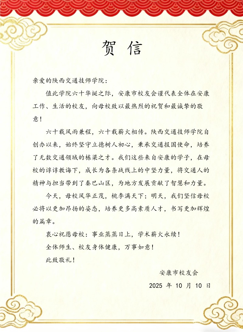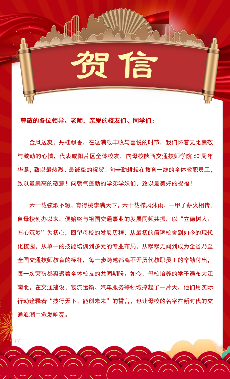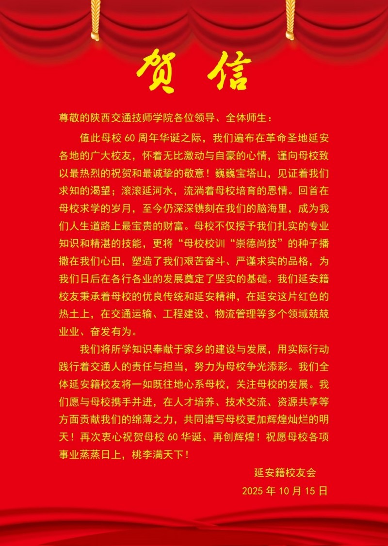 贺信纷至!陕西交通技师学院建校60周年贺信集锦(十)