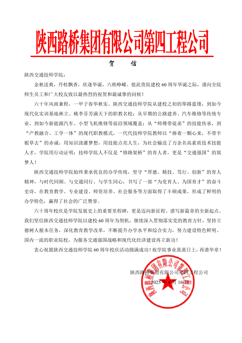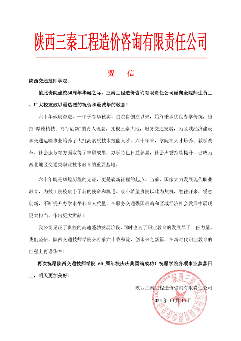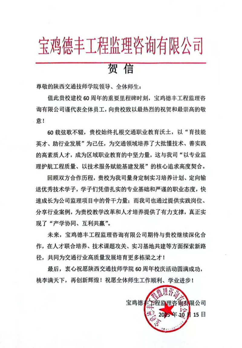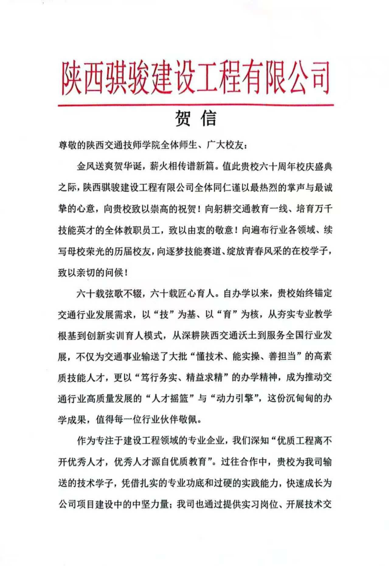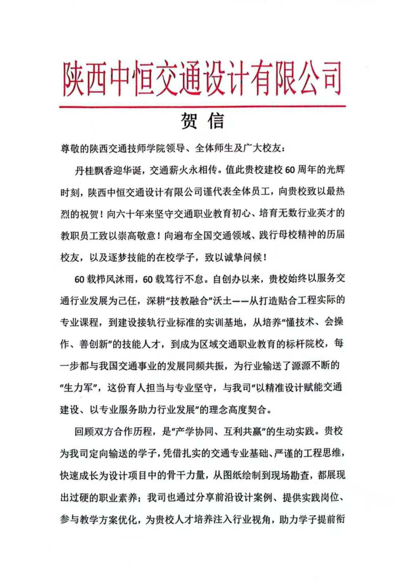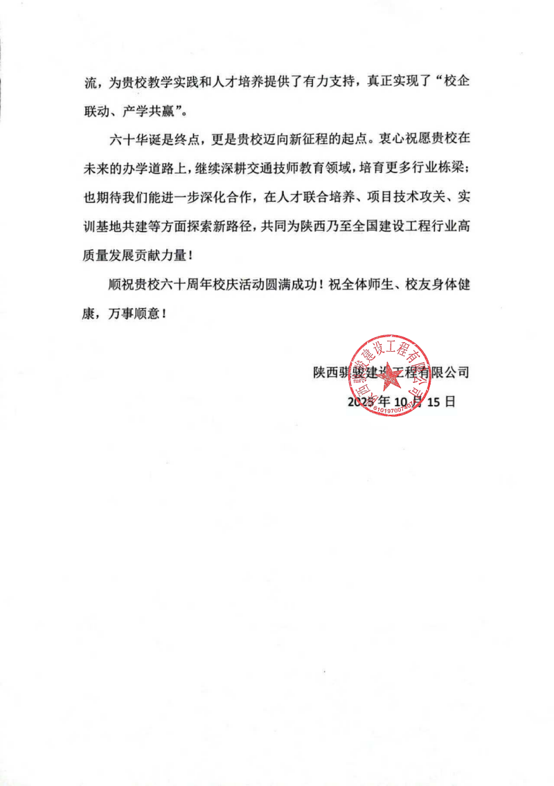 贺信纷至!陕西交通技师学院建校60周年贺信集锦(十一)