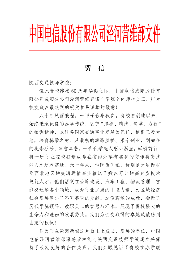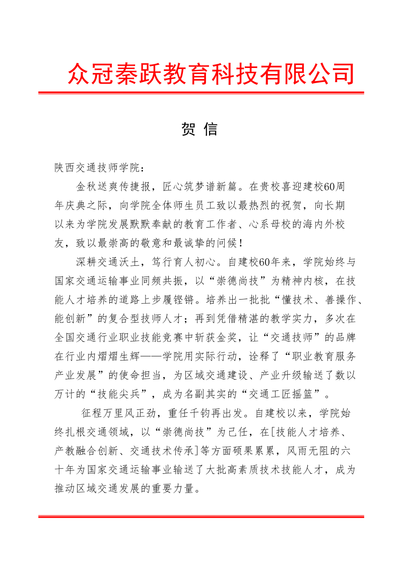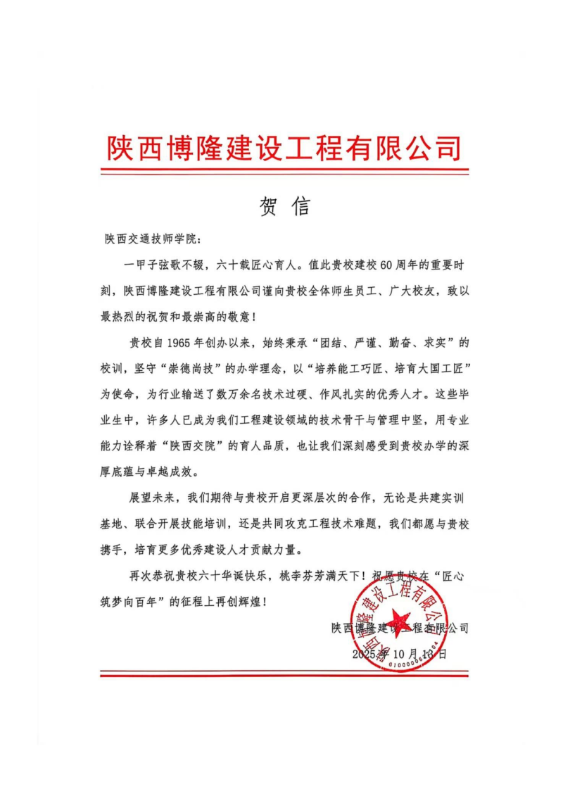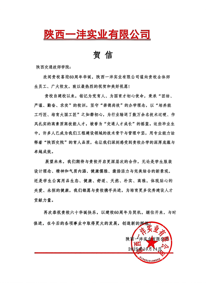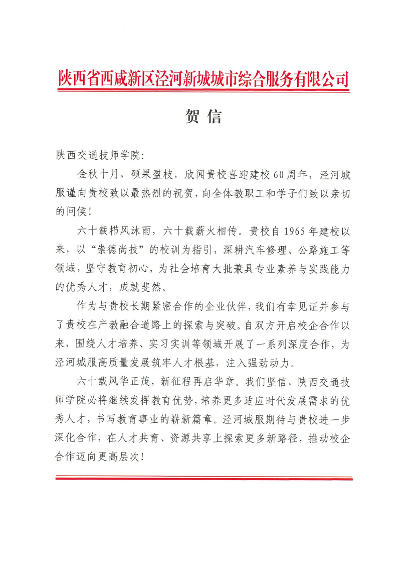 贺信纷至!陕西交通技师学院建校60周年贺信集锦(十一)