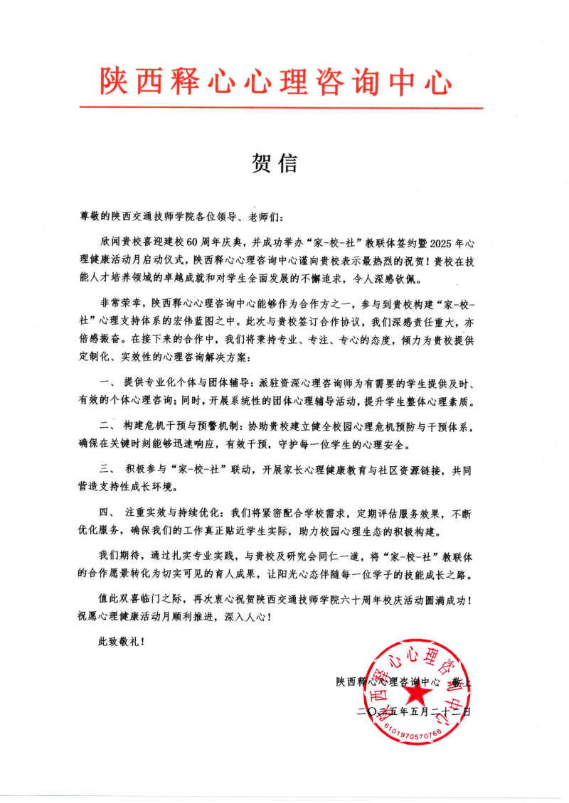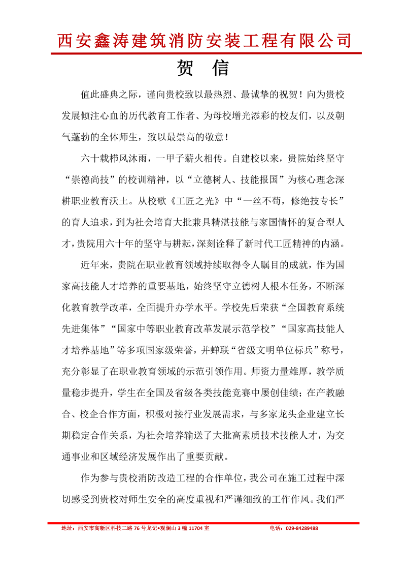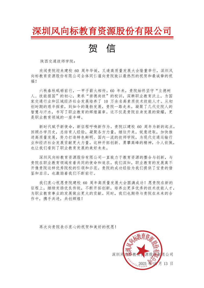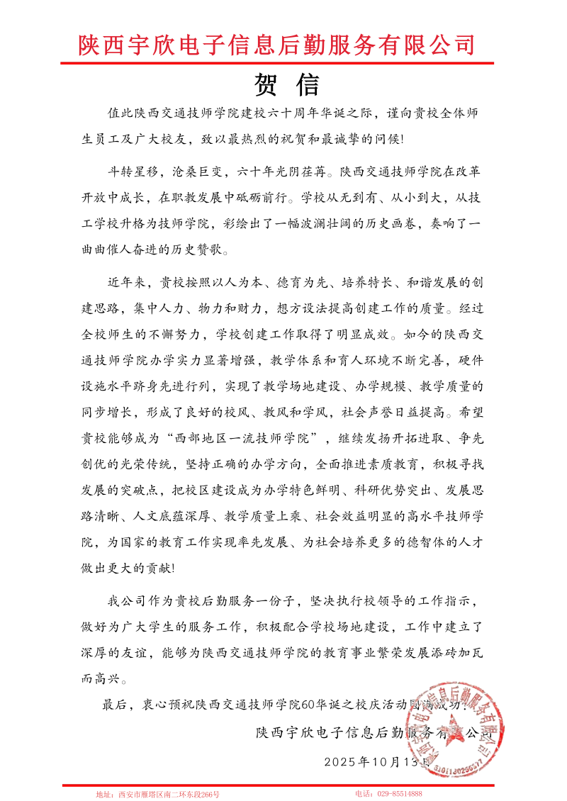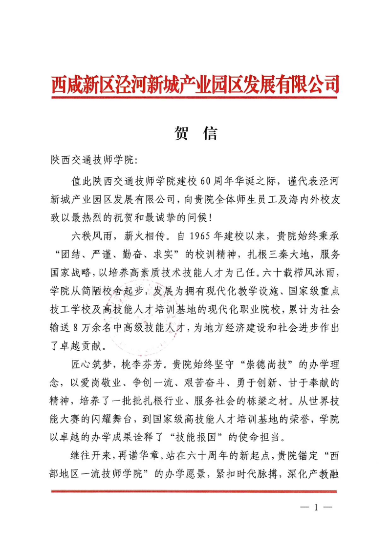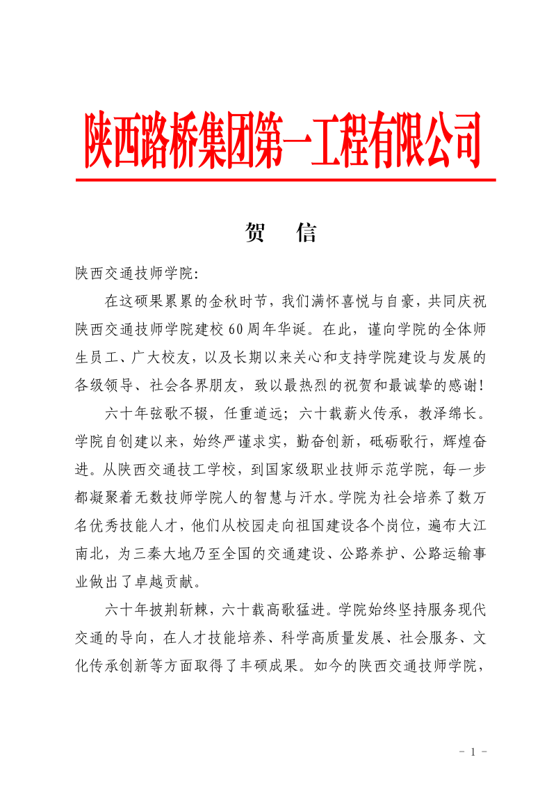 贺信纷至!陕西交通技师学院建校60周年贺信集锦(十一)