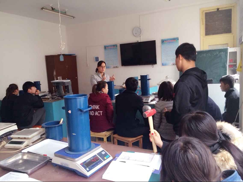 (学院青年女教师林老师上公路材料实验课)