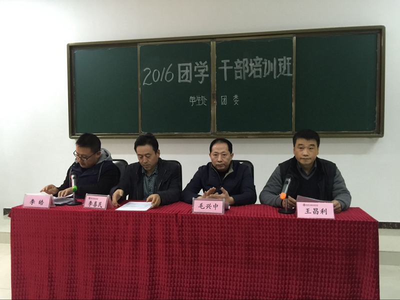 11月29日晚,我院2016年学生干部培训班开班仪式在东阶梯教室举行。学院党委委员、副院长毛兴中,学生处处长李喜民,院团委书记王昌利,全体班主任和近100名学生干部参加。开班仪式由学生处李皓老师主持。