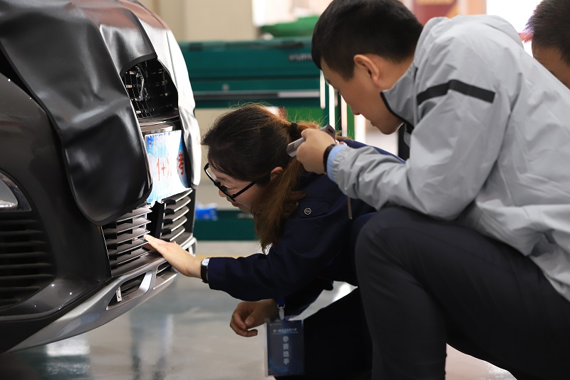 传感器更换与调整、无钥匙系统检修两个环节中,检验选手对智能网联汽车新能源汽车智能化应用关键技术和实际操作技能的熟练掌握程度。参赛选手们聚精会神,招招见实力,步步展风采。