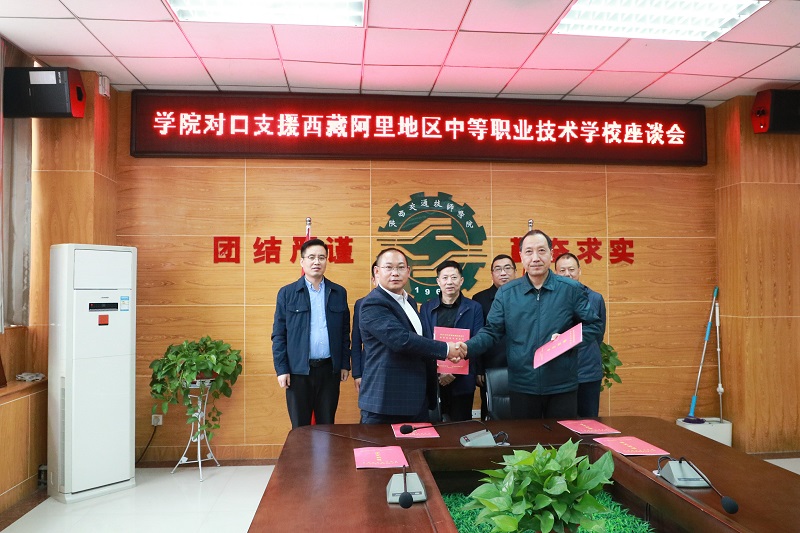 西藏阿里地区教育局副局长杨柳代表阿里地区教育局对我院的大力支援表示感谢,对我院的办学实力给予了高度的评价。同时介绍了阿里中等职业技术学校的基本情况,特别针对学校目前开设的专业情况,存在的困难以及汽车维修专业需要帮扶内容进行了详细阐述。他表示,陕西交通技师学院综合实力居于全省中职院校前列。在全国交通系统、西北地区和交通行业当中享有较高的声誉,具有很强的技能型人才培养能力和水平,希望我院发挥自身专业优势大力支持藏区职业教育,促进援藏工作开花结果。随后,双方签订了对口帮扶协议书。双方人员还就阿里中等职业技术学校现状和需求,就如何加强汽车维修专业建设、师生交流、学生管理以及如何帮助藏区老师提高教学专业水平等话题,展开了深度讨论交流。