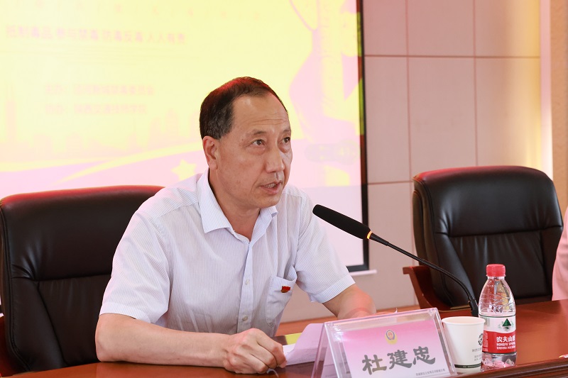 我院党委书记、院长杜建忠为活动致辞,代表学院对前来参会的各位领导和同志们表示热烈欢迎和感谢!向为禁毒工作敬业担当、默默奉献的公安干警表示由衷的敬意!他强调:禁毒工作, 事关社会稳定、民族兴衰和国家前途, 是“功在当代、利在千秋”的大事。相信在西咸新区泾河新城党委的坚强领导下,在广大人民群众,社会各界朋友的大力支持下,一定能够夺取新时代新城禁毒工作的全面胜利,为泾河新城经济社会健康发展创造良好稳定的社会环境,为新城人民过上幸福美好的生活创建一片净土。