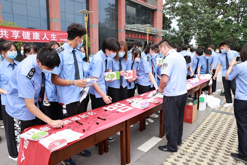 在第34个国际禁毒日来临之际,6月24日,我院举办了西咸新区泾河新城国际禁毒日宣传活动。我院党委书记、院长杜建忠,西咸新区禁毒委办公室常务副主任、刑侦支队支队长罗斌,泾河新城禁毒委办公室主任、泾河公安分局副局长邓西伟,泾河新城政法工作部部长王锐以及泾河新城管委会直属20家单位和我院师生代表共计200余人参加了活动。