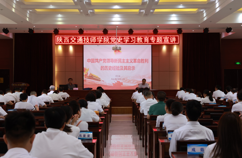 为继续深入开展党史学习教育,深化党史学习,7月6日下午,我院党委特邀西安建筑科技大学周恩毅教授来校做党史学习教育专题宣讲,学院全体领导班子成员、党员、教职工聆听宣讲并学习。宣讲会由院党委书记、院长杜建忠同志主持。