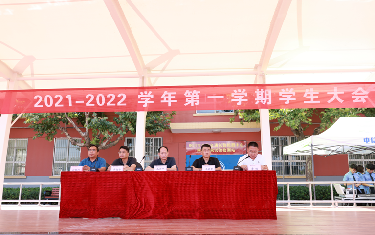 金色九月,陕西交通技师学院全体师生迎来了新的学期,开启新的希望,承载新的梦想。9月14日下午,全体师生齐聚学院大操场,以饱满的热情参加了本学期学生大会。学院党委委员、副院长毛兴中、学生处党支部书记王昌利、教务处处长李剑平、学生处处长封胜利出席了大会。团委负责人李皓主持会议。