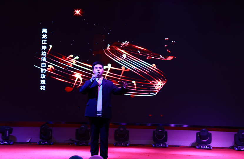 同学们以歌传情,以声献礼,用嘹亮动听的歌声和热情、奔放的舞蹈,表达对祖国的无限热爱和美好祝福。