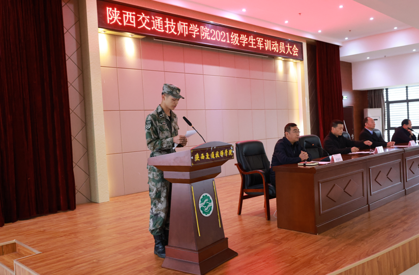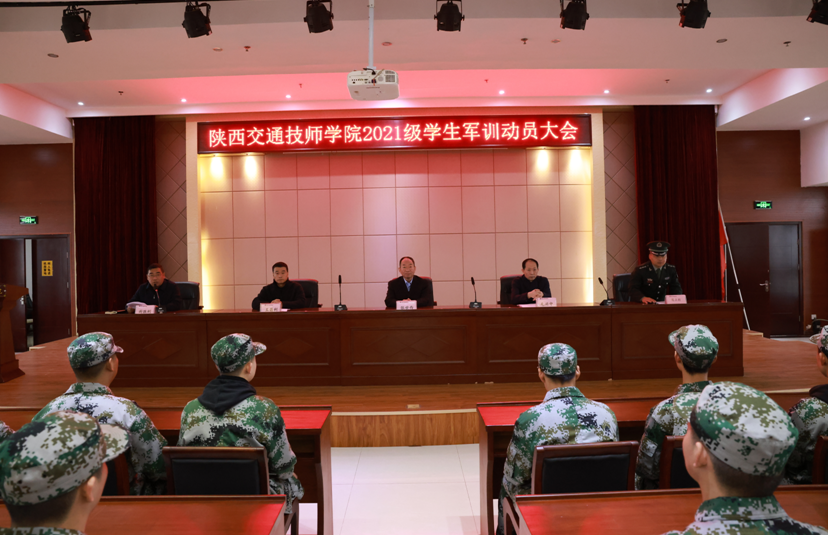 按照学院统一部署和学生管理工作安排,10月11日上午,陕西交通技师学院2021级新生军训动员大会在交通客运服务实训楼会议室隆重举行。学院党委委员、纪委书记张世西、副院长毛兴中、学生党支部书记王昌利,军事训练营营长寇立朋以及全体教官、参训新生参加了动员大会。大会由学生处处长封胜利主持。