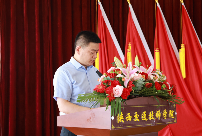 会议第二项,工会主席孟祥斌老师宣读《陕西交通技师学院工会贺词》