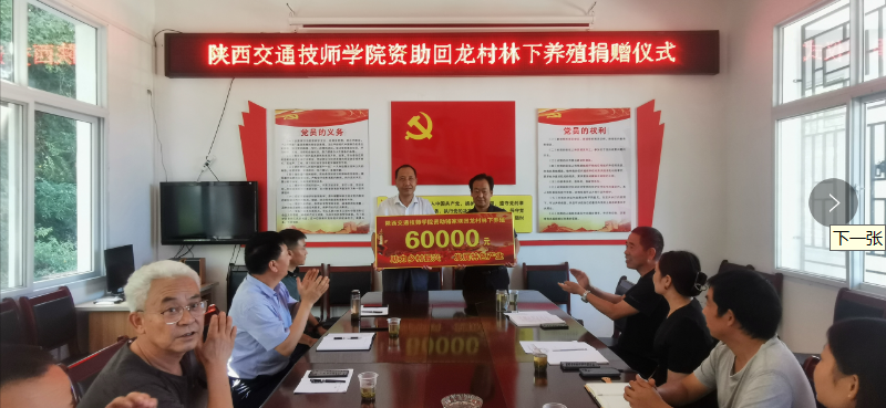 与村两委干部交换意见,实地调研村集体经济发展情况、代表学院向回龙村林下养殖项目捐助发展资金6万元,助力村产业发展。