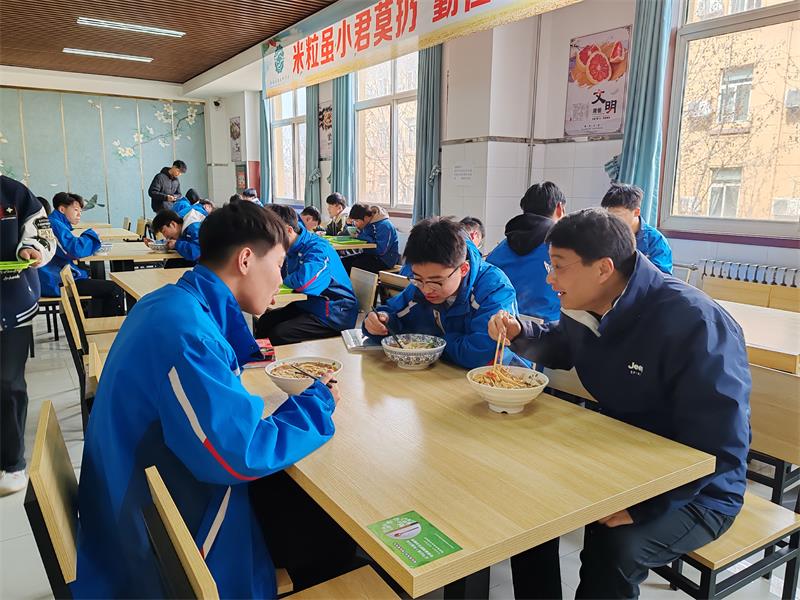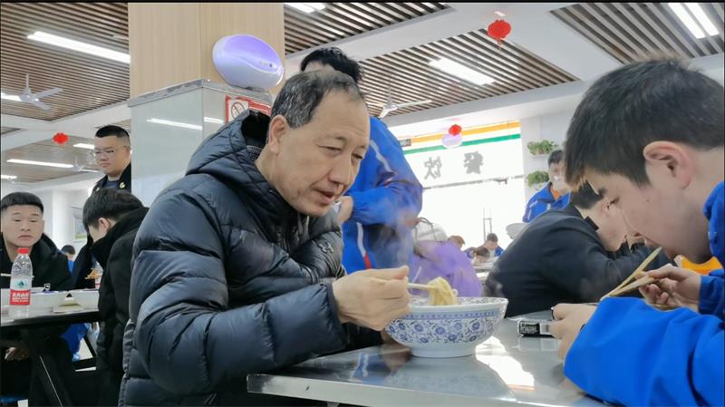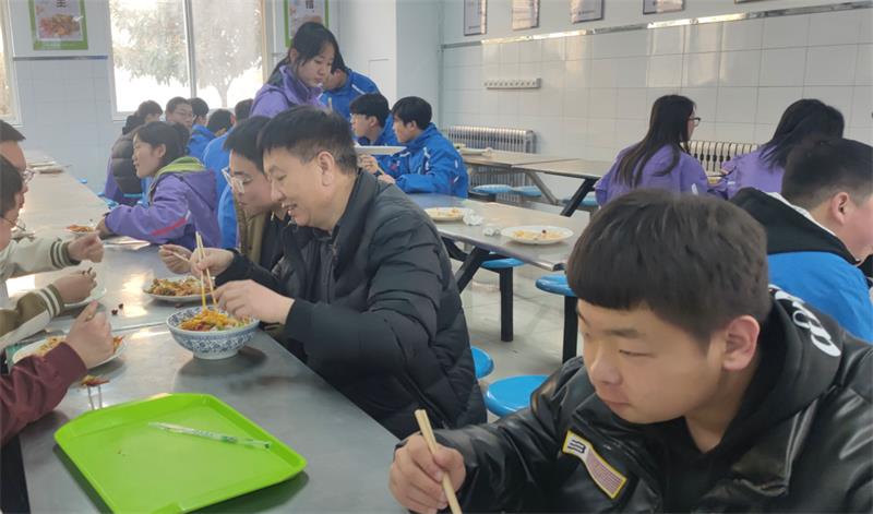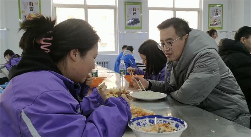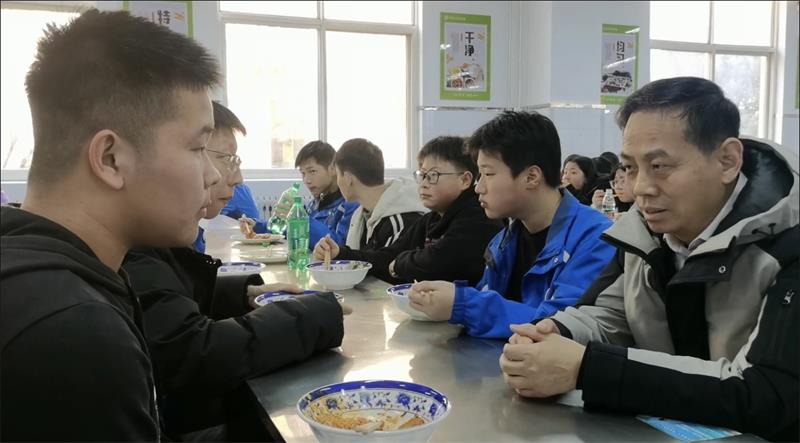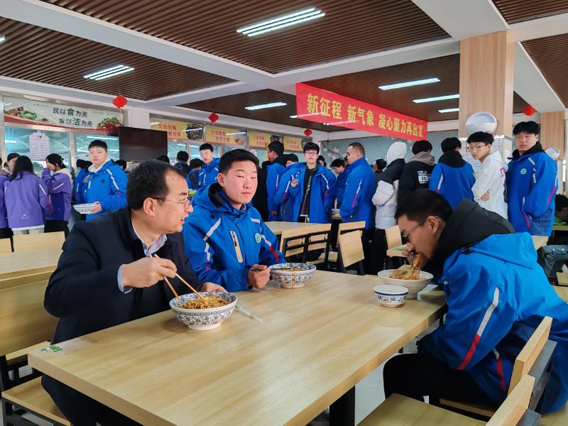 3月6日中午,学生食堂气氛温馨,党委书记、院长杜建忠带领班子成员与学子共进午餐。