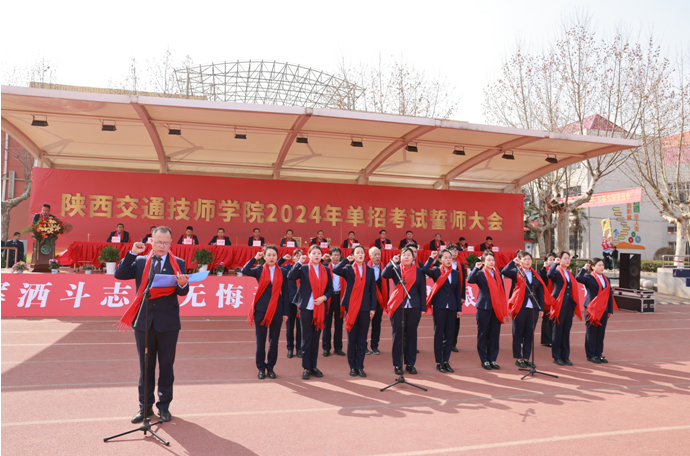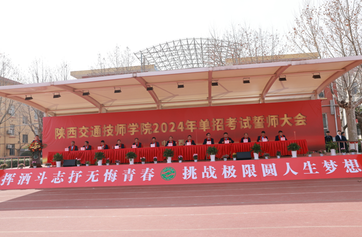 春光明媚、“龙门”高搭、彩旗招展、横幅飘扬。2024年3月14日,陕西交通技师学院隆重举行2024年单招考试誓师大会。陕西交通技师学院党委书记、院长杜建忠,陕西交通职业技术学院党委委员、副院长刘晶,西安高新科技职业学院党委副书记、执行院长睢宇恒,陕西交通技师学院领导班子成员、全院师生及单招毕业班学生家长代表共计2300余人参加了本次大会。