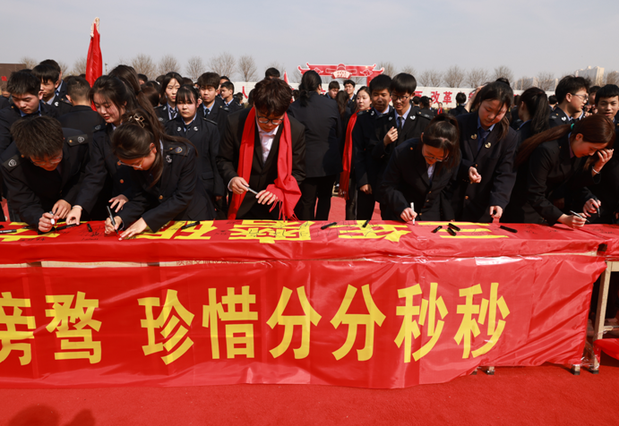 大会结束,学院领导、老师和同学们一起在宣誓横幅上签名,为高考最后的冲刺作出最郑重的承诺,书写对未来的憧憬。