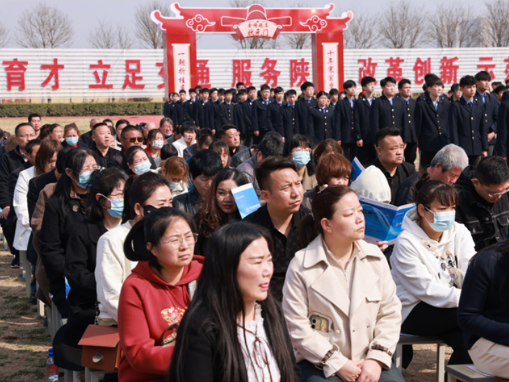 誓师大会在庄严的升旗仪式中拉开序幕。首先,陕西交通技师学院党委委员、副院长董鹏为学生做考前总动员,鼓励参加单招的全体学生勇敢迎接挑战,以顽强的毅力、拼搏的精神,决胜2024年单招考试。教师代表蒋茉老师作表态发言,为同学们加油鼓劲,考出好成绩,圆梦大学!学生代表田嘉怡同学表达了自己的心声,将一腔热血化为实际行动,为父母争气,为老师争誉,为学校争光,为人生添彩!家长代表李桂荣女士对老师们的辛勤付出表示衷心的感谢,对同学们寄予了深切的厚望。家长们为感谢学院和老师对孩子们三年来的培育之恩,向学院赠送锦旗,这也是社会和家长对学院工作最大的肯定与鼓励。