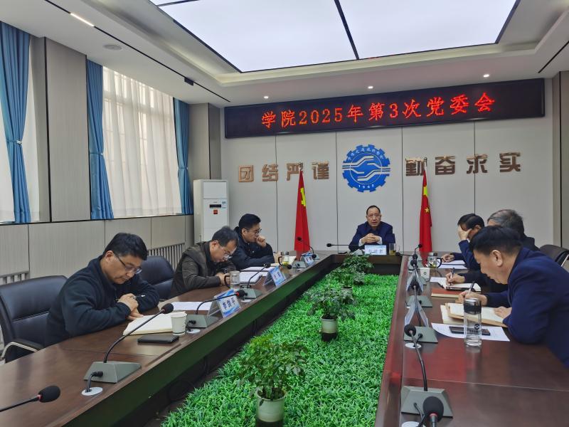 3月13日上午,我院党委组织召开第3次党委会,深入学习2025年全国两会精神。全体党委委员参加会议,会议由学院党委书记、院长杜建忠主持。