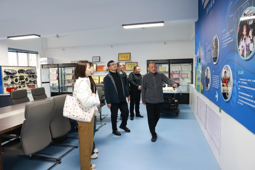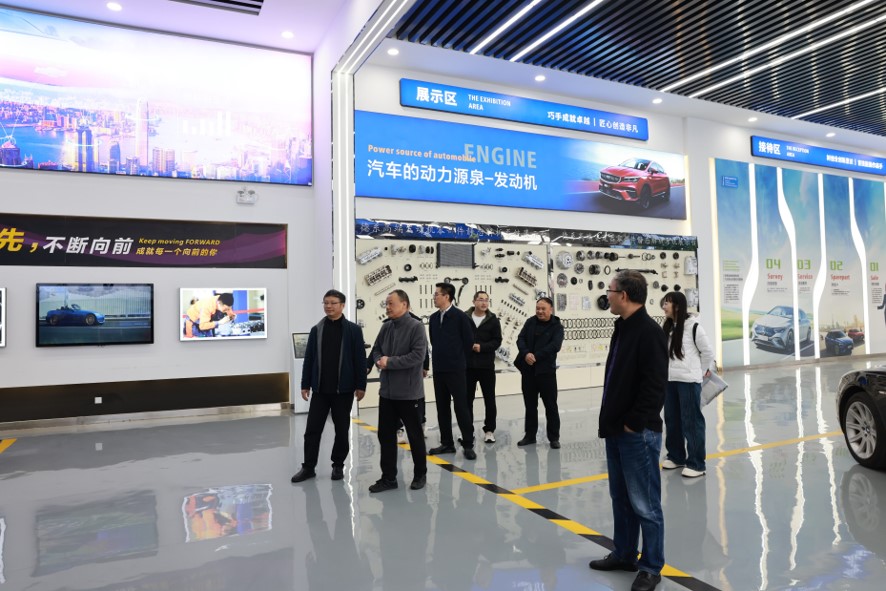 王国库一行参观了学院学术报告厅、学生餐厅、公路系校企合作实验室、测量仪器室、试验检测基地、汽修实习工间、大师工作室等场所,对学院的优美的校园环境、先进的教学设施表示肯定。